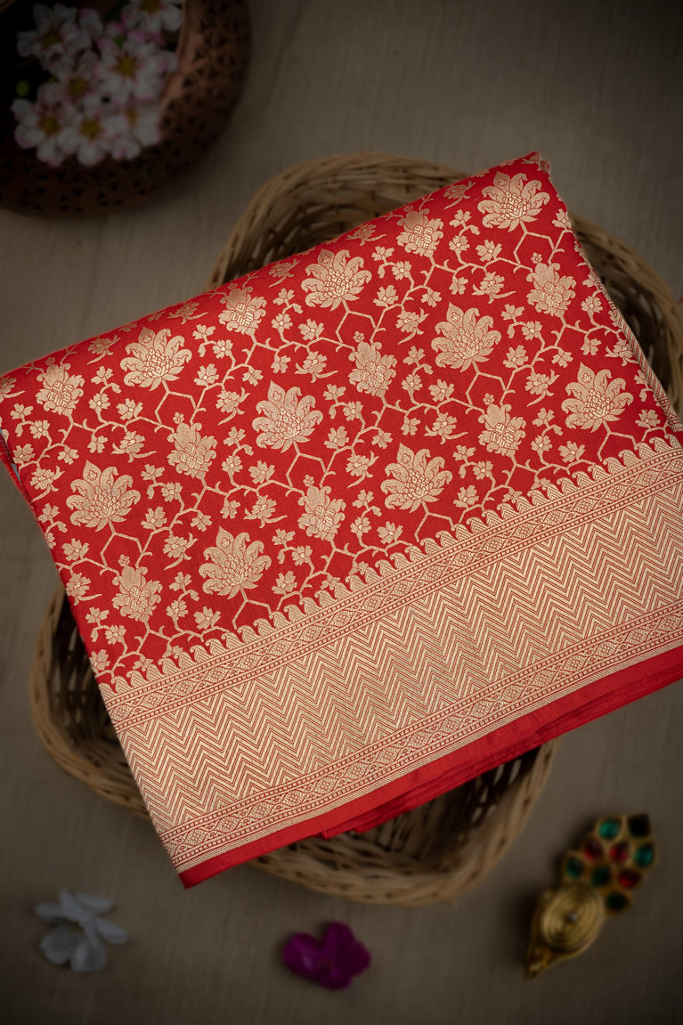 Varamahalakshmi Red & Gold Banarasi Jaal Saree