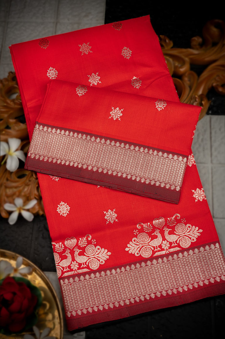 Varamahalakshmi Red & Maroon Venkatagiri Buttis Saree