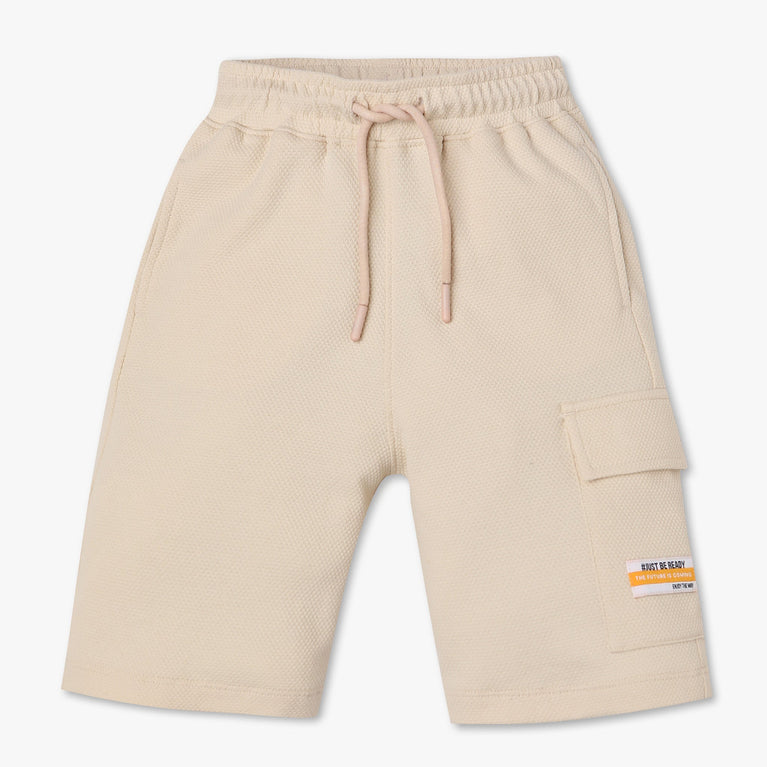 These knee-length cargo pocket shorts are designed for comfort and durability, making them perfect for active boys. The blend of cotton and polyester ensures a soft feel while maintaining strength and ease of movement. With a regular fit, these shorts offer a relaxed and comfortable wear, ideal for everyday activities.