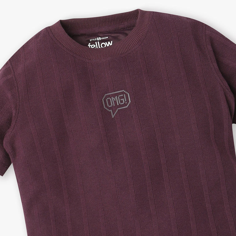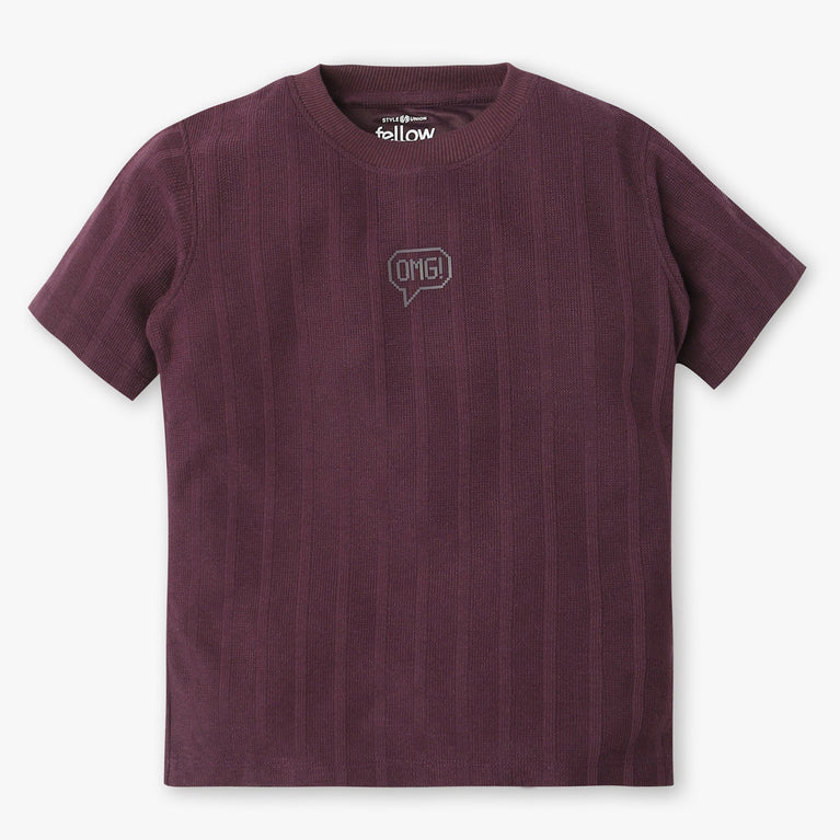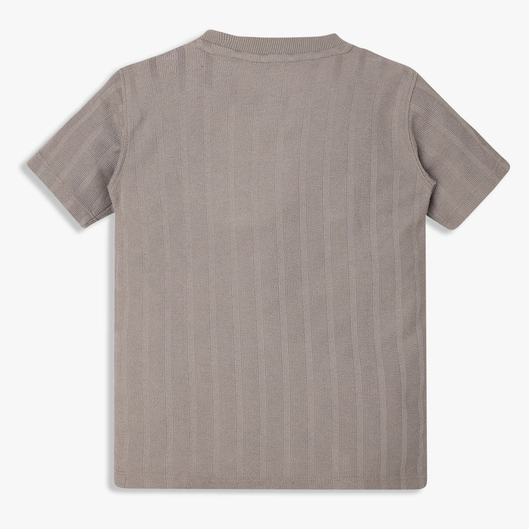 Experience the perfect blend of comfort and style with our Boys Knitted Crew Neck T-Shirt. Crafted from a soft cotton-polyester blend, this t-shirt offers a cozy feel that keeps your little one comfortable all day long. The solid pattern and classic crew neck design make it a versatile addition to any wardrobe, perfect for both casual outings and playtime adventures.