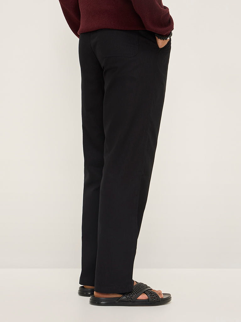 ETA Black Solid Relaxed-Fit Mid-Rise Cotton Chinos