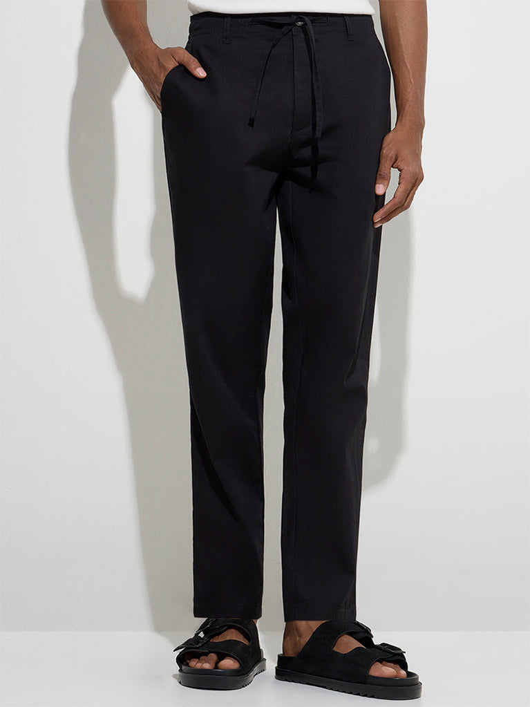 ETA Black Textured Relaxed-Fit Mid-Rise Cotton-Blend Pants