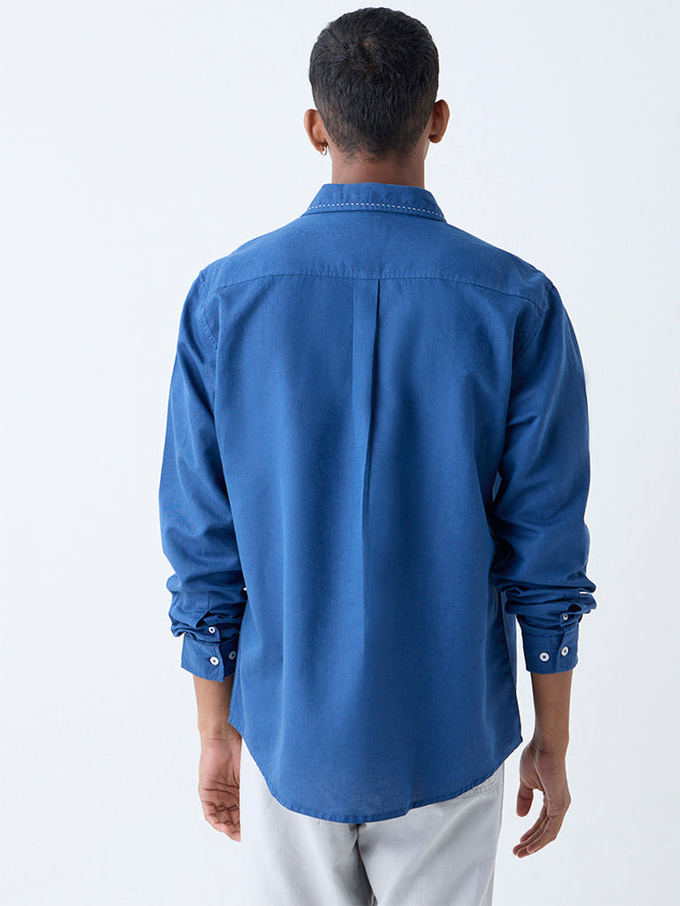 This blue shirt from ETA is designed with a focus on minimalism. Cut from a soft cotton blend fabric in a relaxed handle, it features a classic collar, full sleeves, and a button placket for easy wear.