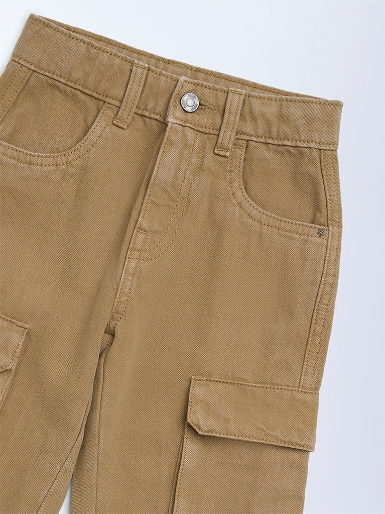 HOP Kids Boys Brown Cargo-Style Mid-Rise Jeans