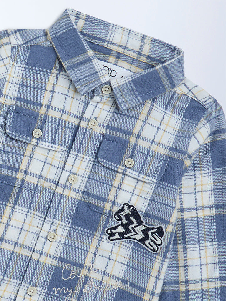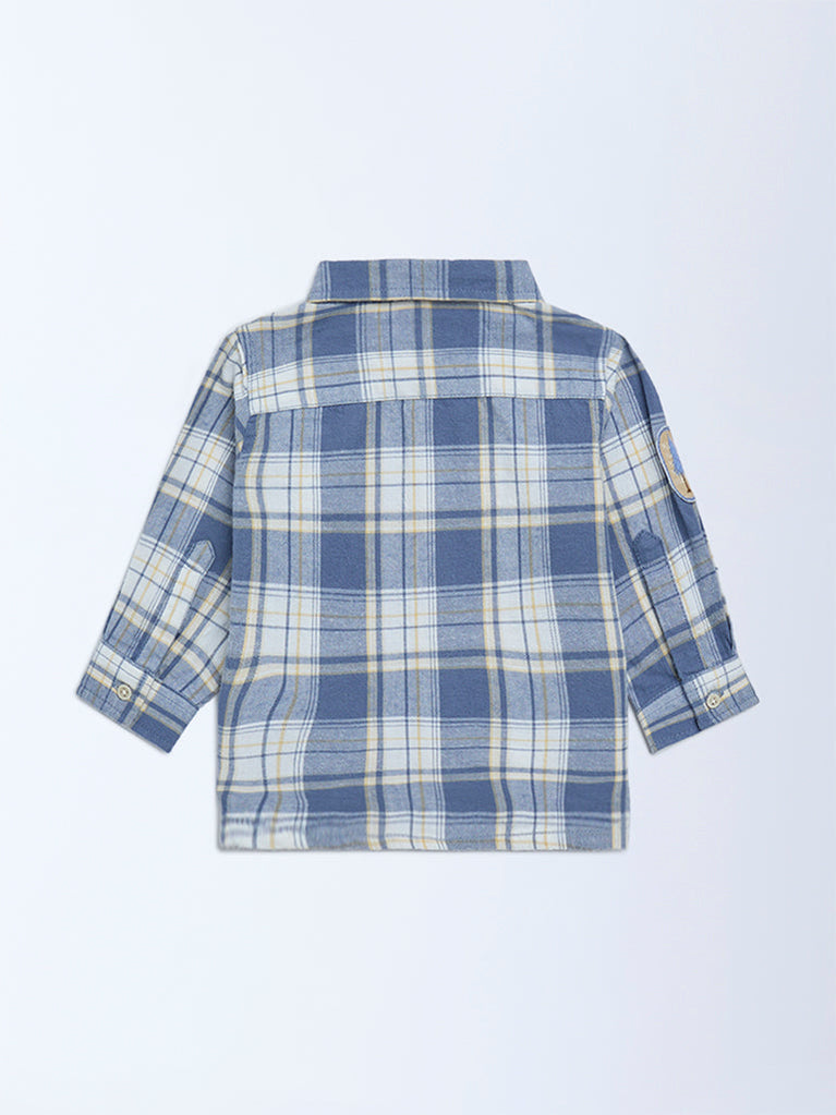 HOP Baby Boys Dusty Blue Checks Detailed Cotton Shirt