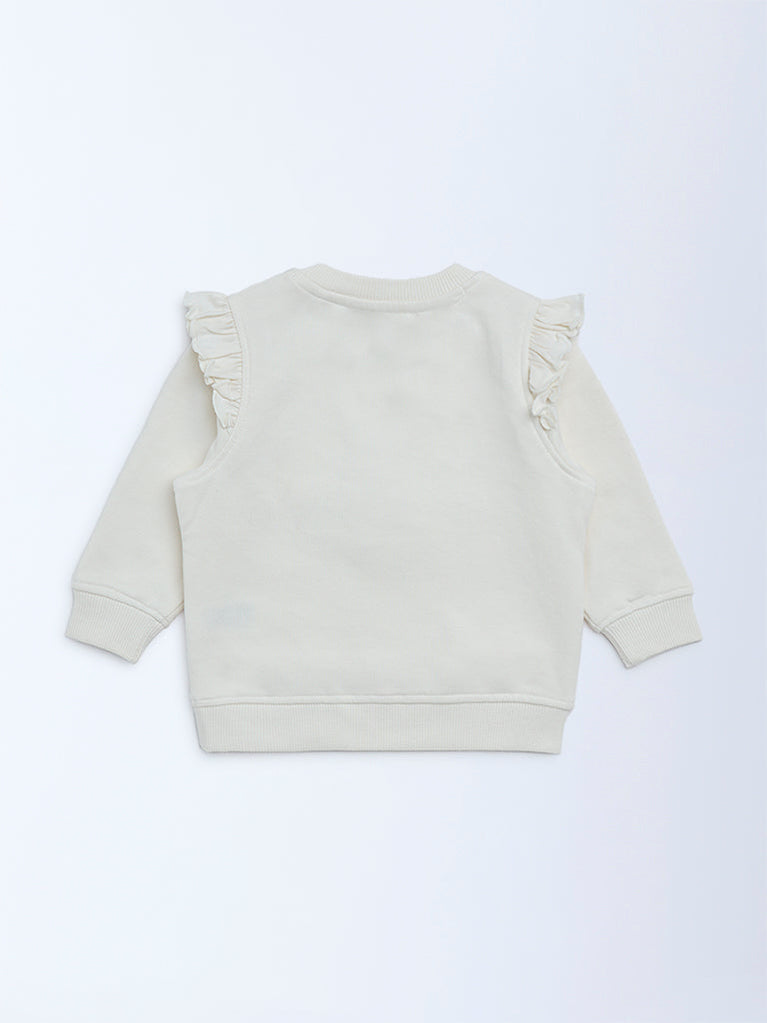 HOP Baby Girls Off-White Embellished Cotton-Blend Sweatshirt