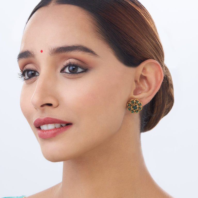 Kushal's Fashion Jewellery Navaratna Antique EarringEnjoy the elegance of Kushal's Ruby and green Antique Earrings. These earrings, which combine sanguine and pastel colors, are a tribute to ageless elegance and are the talk of the town. They are ideal for any occasion and are great presents for your loved ones. These delicate accessories will enhance your ethnic clothing.