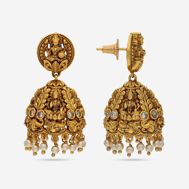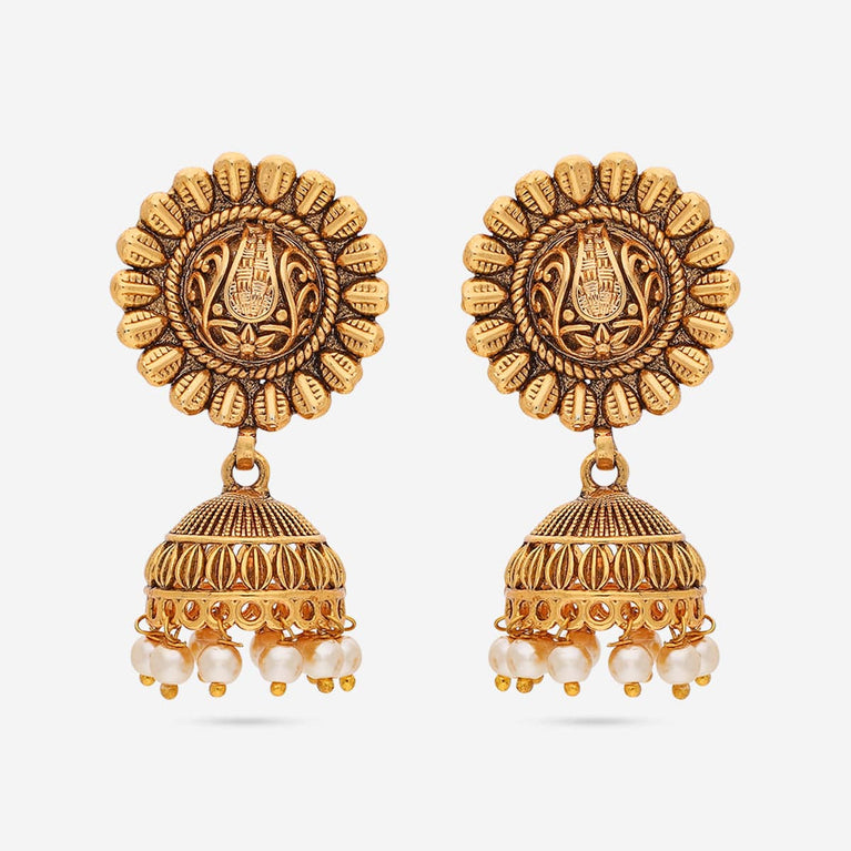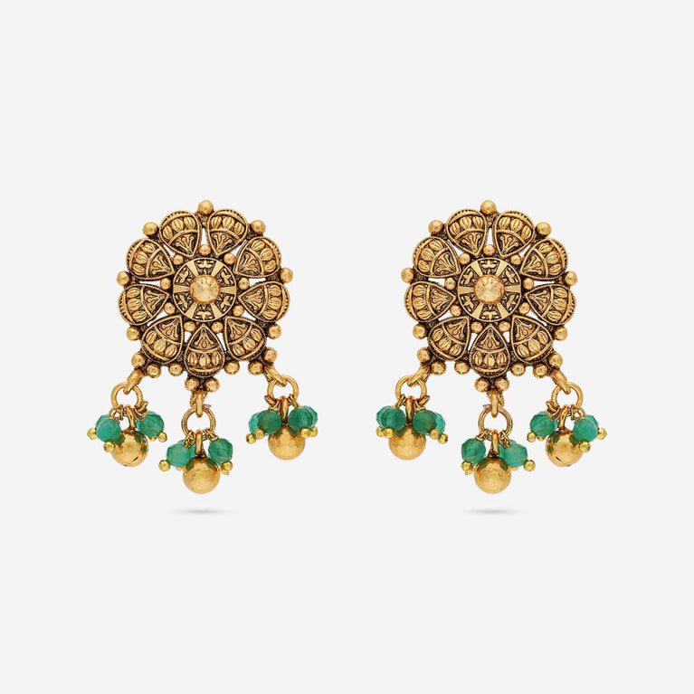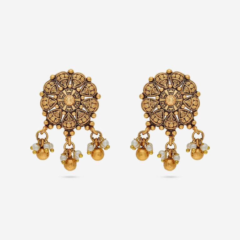 Kushal's Fashion Jewellery Flower Motif Antique EarringWearing this antique earring will make you a show-stopper this festive season. Why? Because of its look, it will be more stylish when you wear it. The fine work and small detailing in this earring is the only thing making it more eye-catching. Make moments by wearing this beautiful earring from Kushal's Fashion Jewellery.