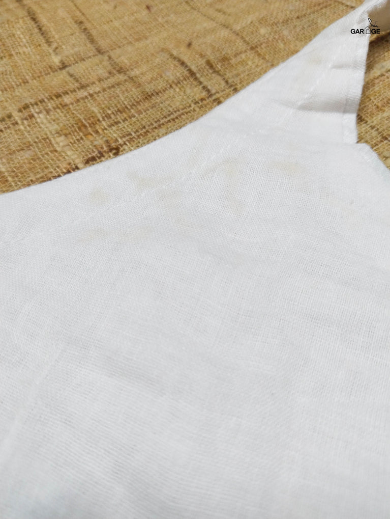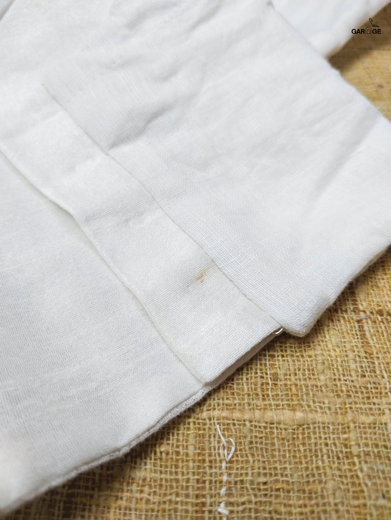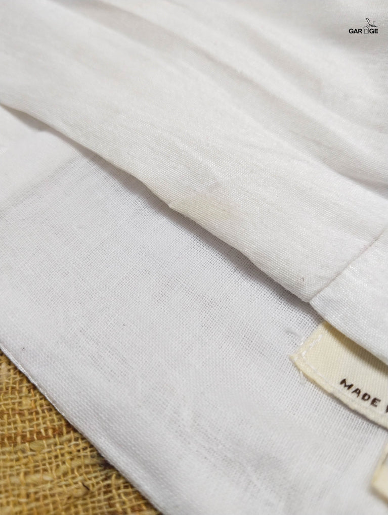 ETA introduces this white shirt, woven from pure cotton fabric. Featuring stripe embroidery on a relaxed frame, it features a band collar, full sleeves and a button-up front. A refined yet easy-going addition to your everyday wardrobe.