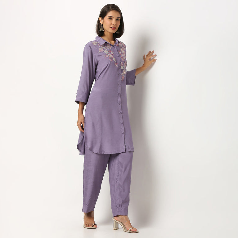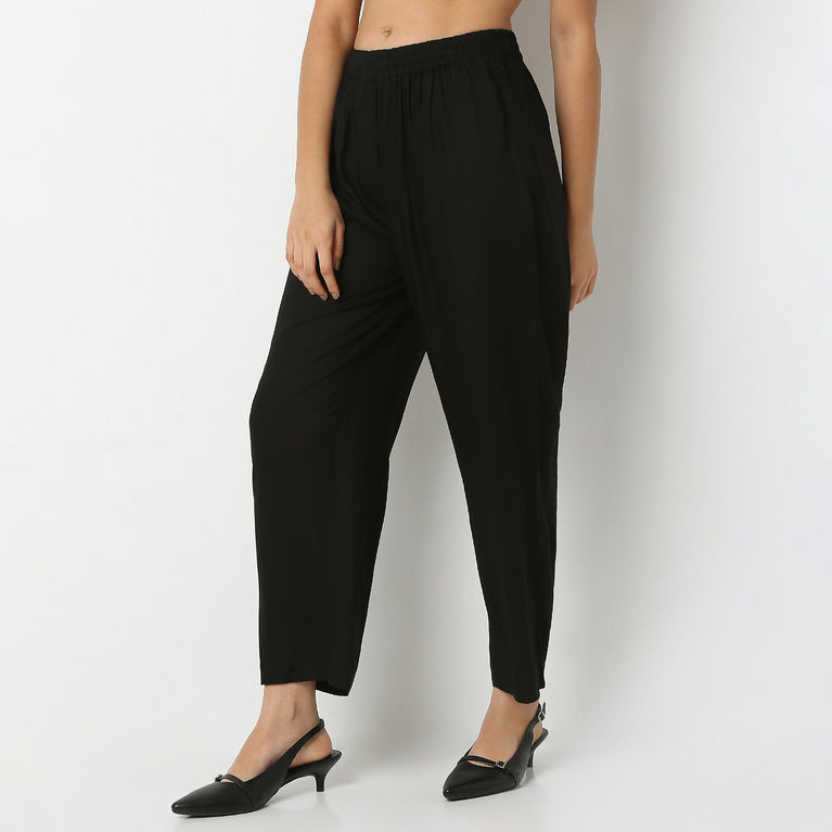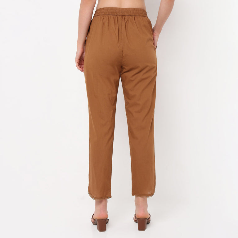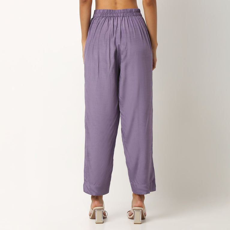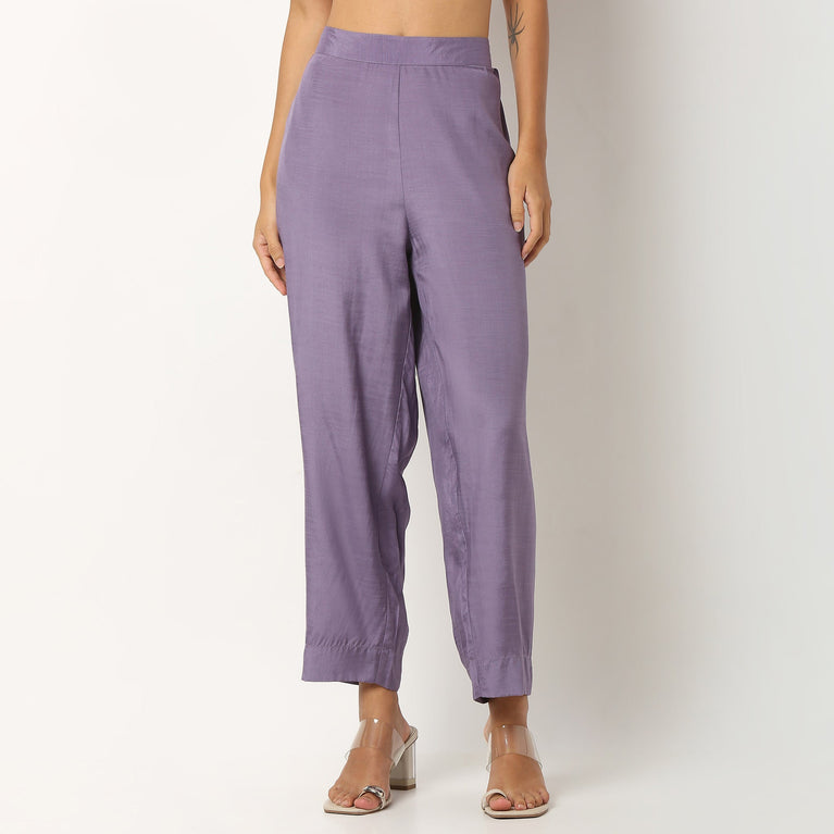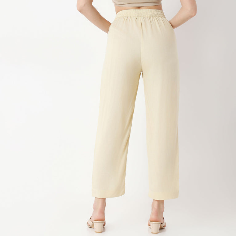Ankle Length Straight Fit Solid Pants
