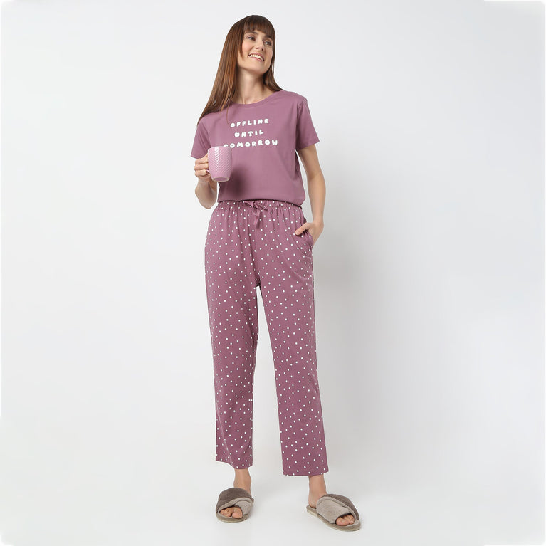 Ankle Length Straight Fit Polka Dot Lounge Pyjamas