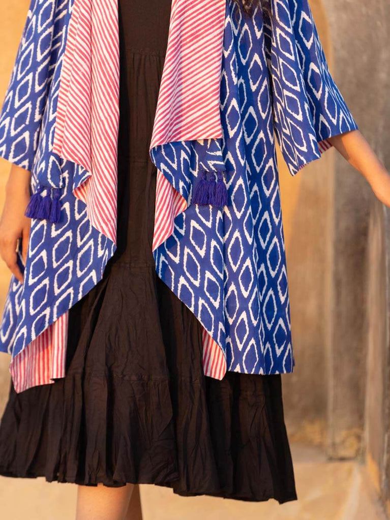 Wanderer Block Printed Waterfall Reversible Shrug