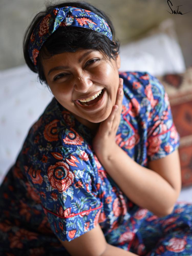 Ta the model is wearing our lounge wear called as Slumber Party https://suta.in/products/slumber-party
