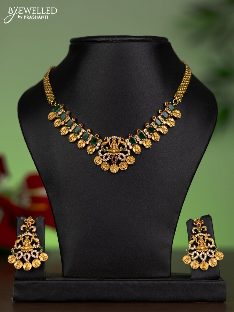 Antique attigai necklace lakshmi design with kemp & cz stones