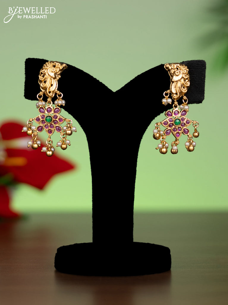 Antique attigai necklace peacock & chandbali design with kemp stones and pearl hangings