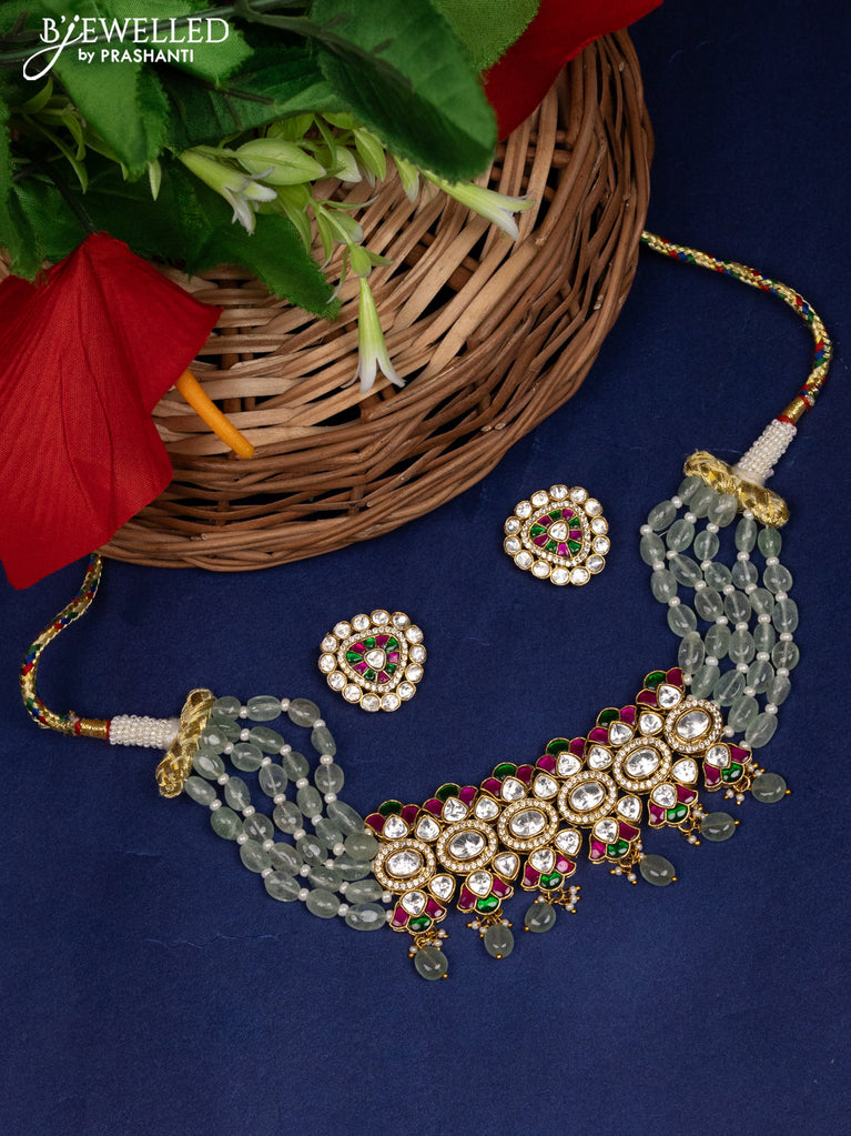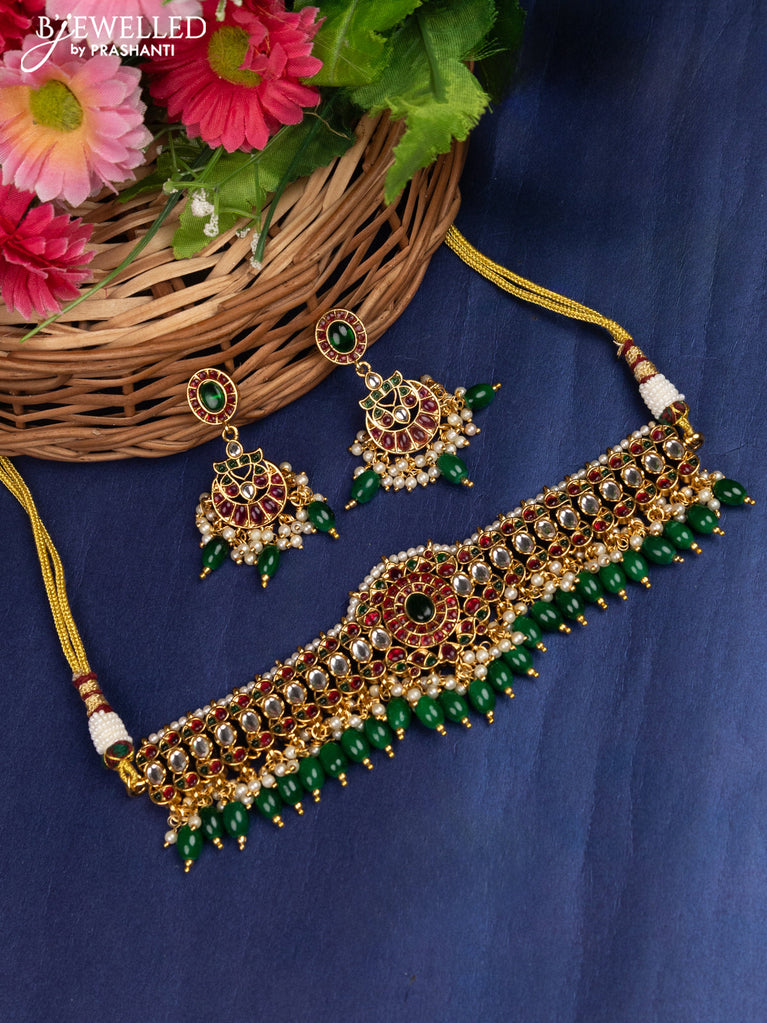 Antique choker with jadau kundan stones and pearl & green beads hanging