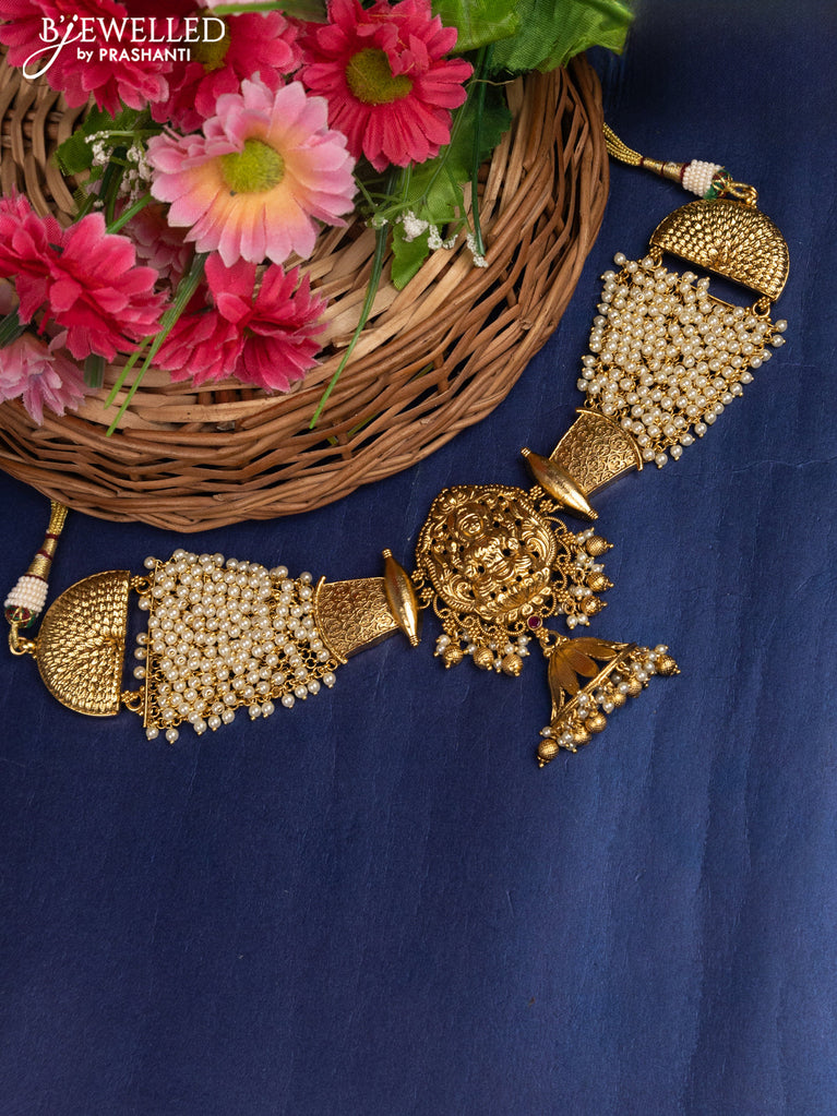 Antique choker with lakshmi design pendant and pearl hangings without earrings