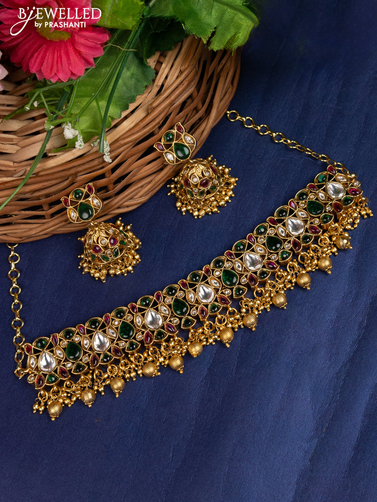 Antique choker with jadau kundan stones and golden beads hanging