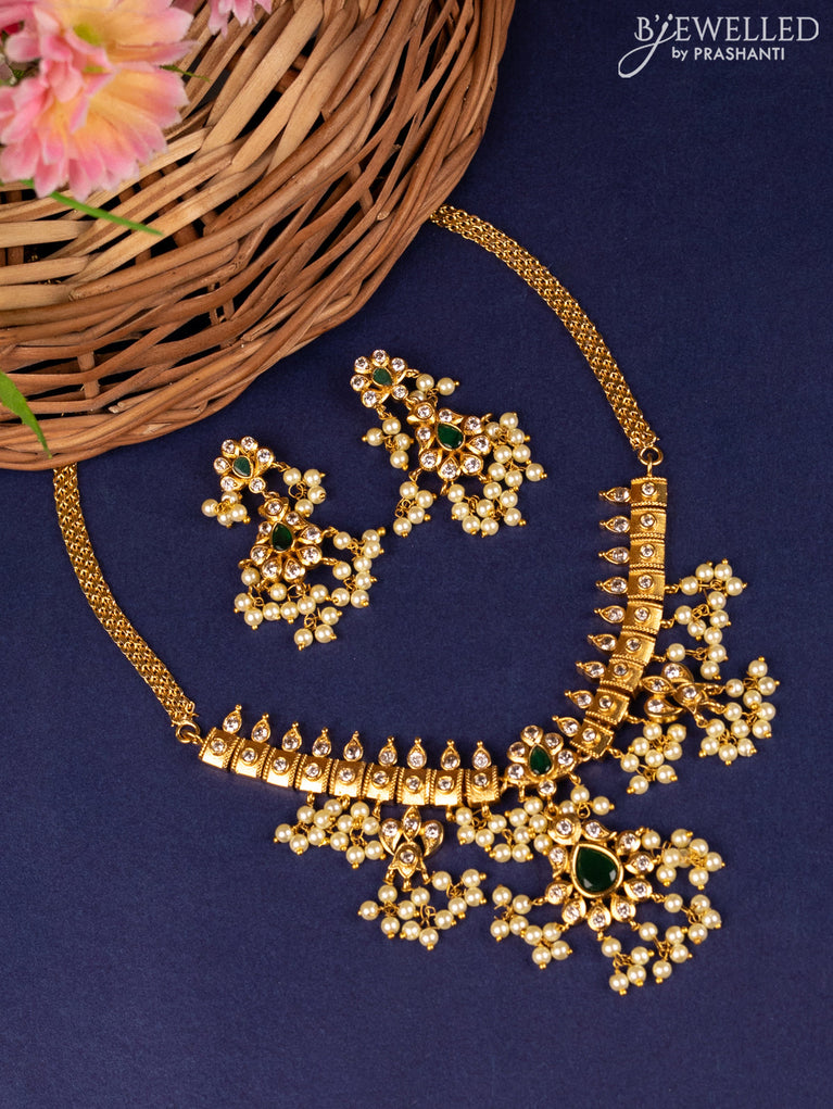 Antique choker with kemp & cz stone and pearl hanging without earring