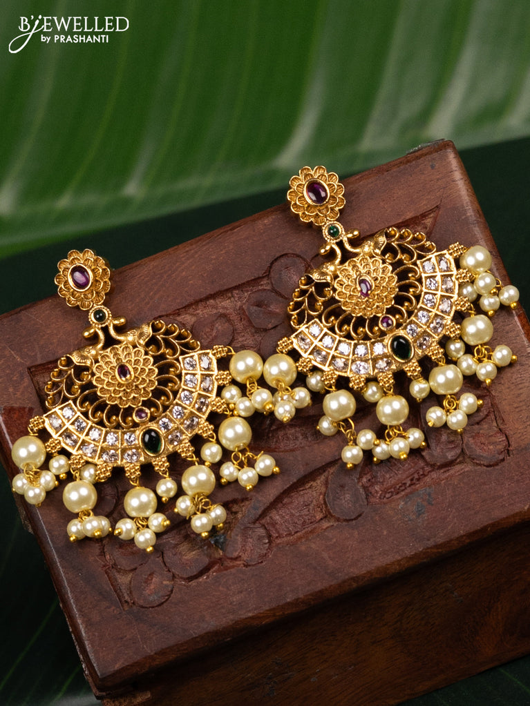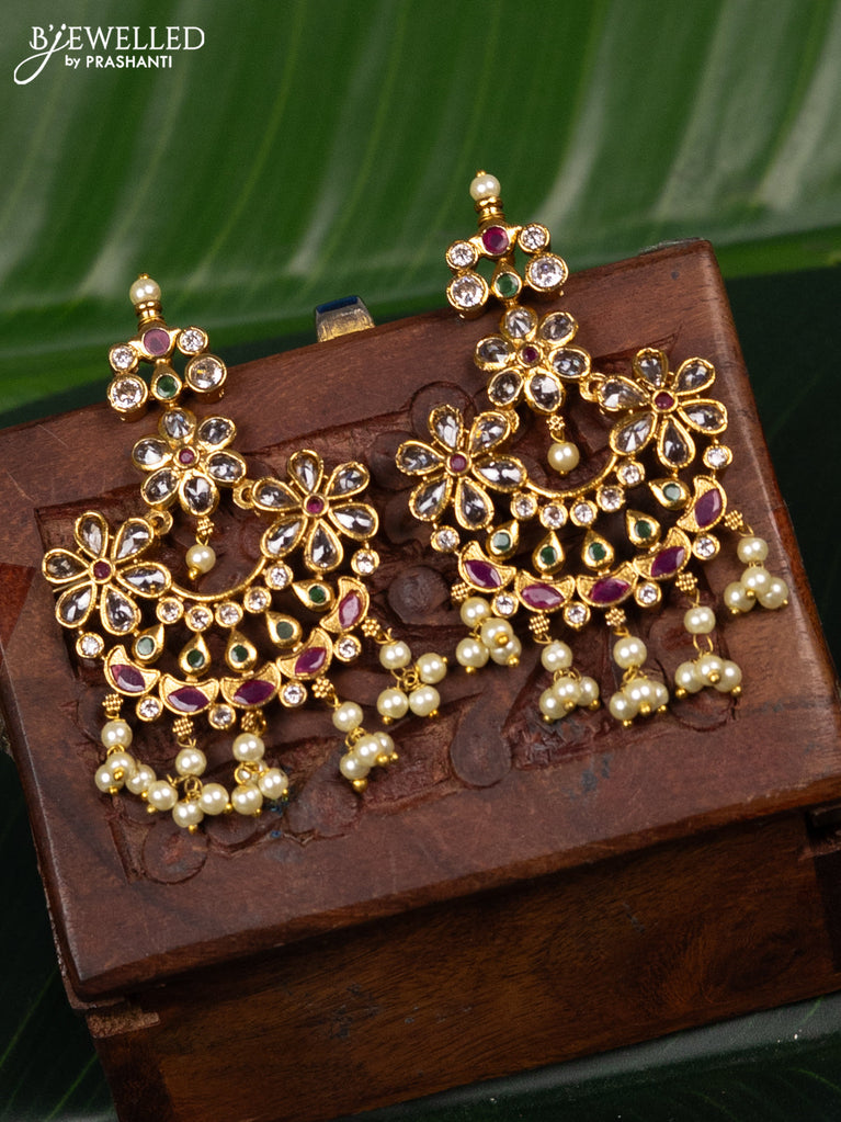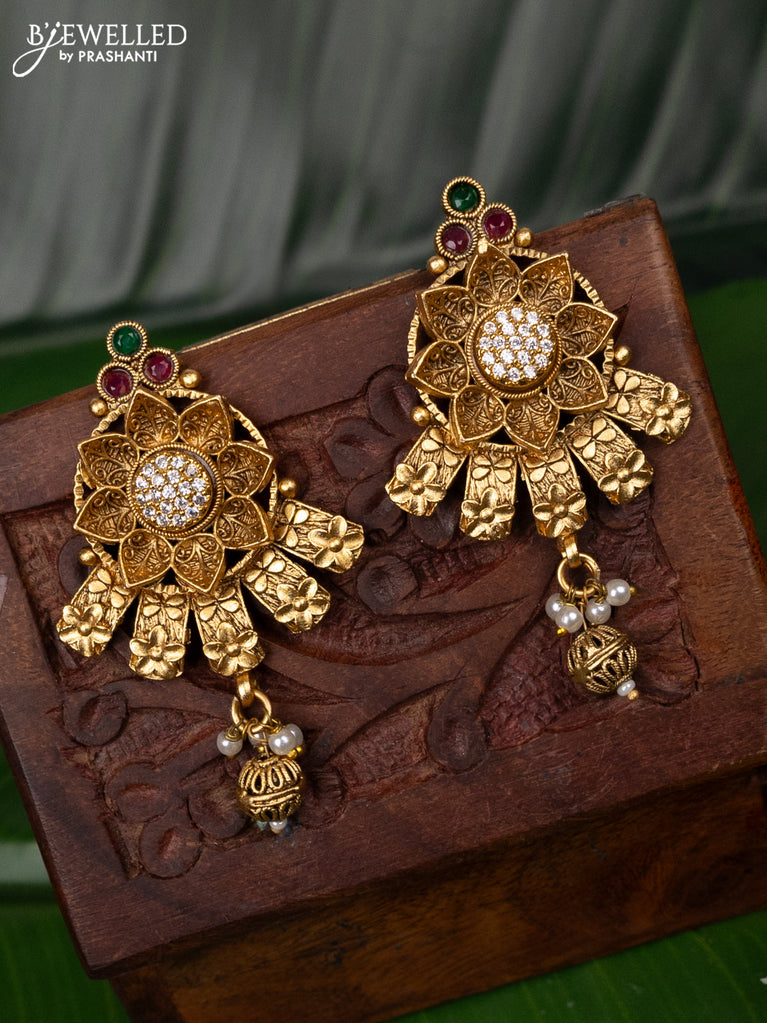 Antique earring floral design with kemp & cz stones and pearl hangings