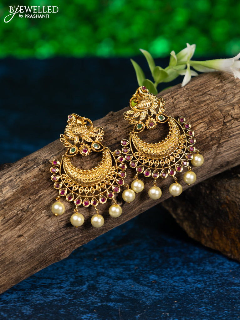 Antique earring chandbali design with kemp stones and pearl hanhings