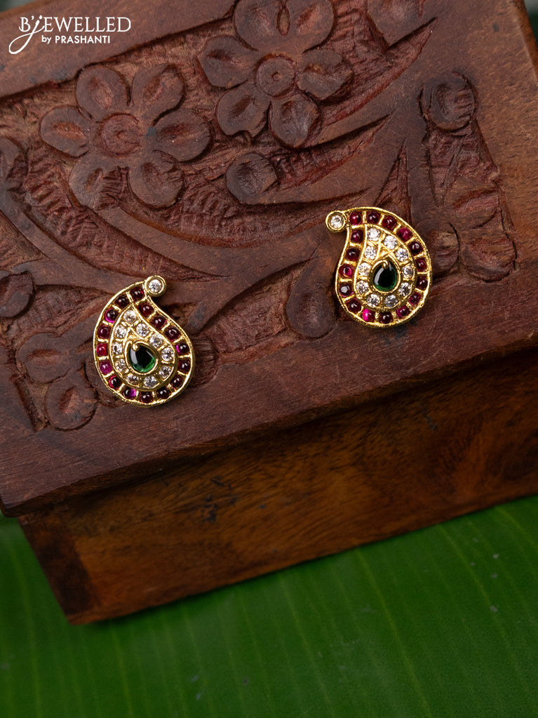 Antique earring pallakku design with kemp stones and golden beads hanging