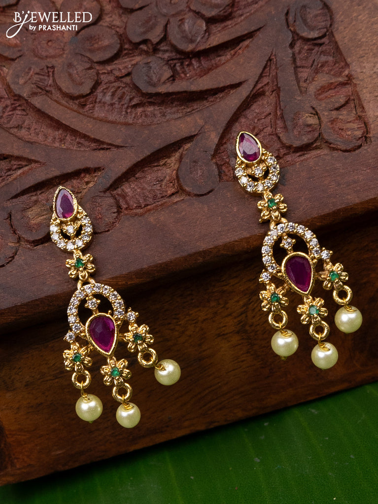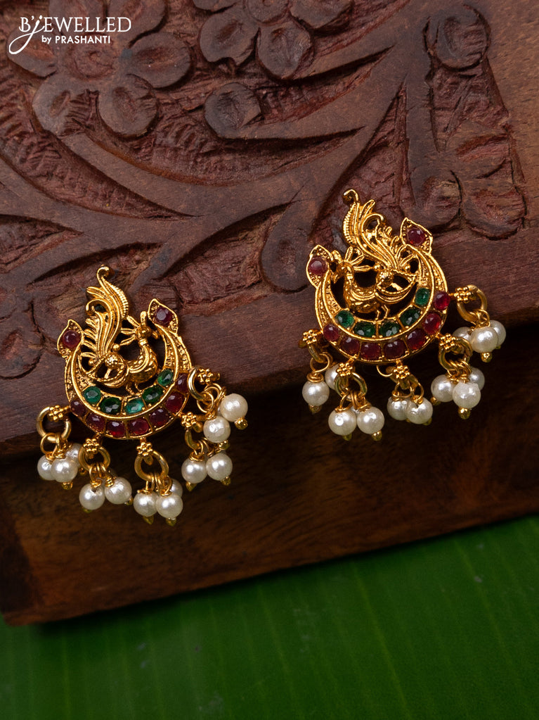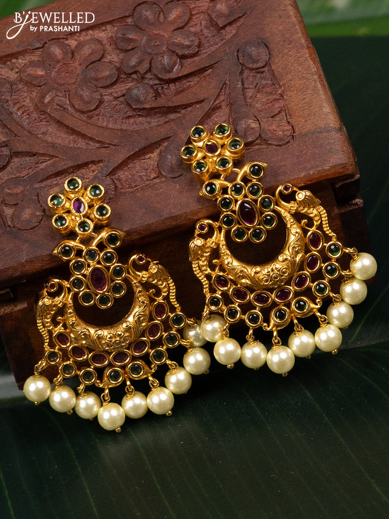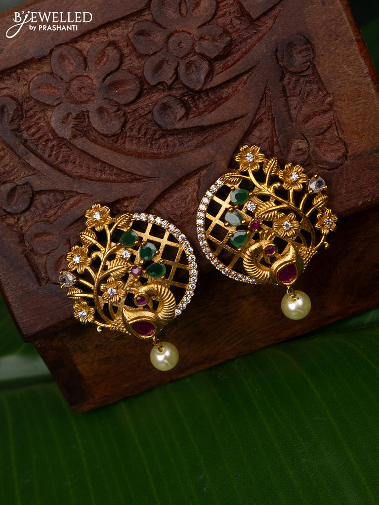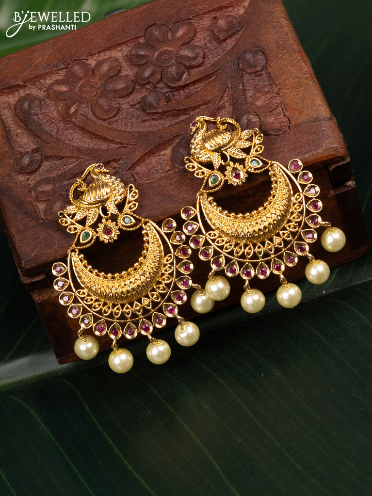 Antique earring peacock design with kemp & cz stones and pearl hanging