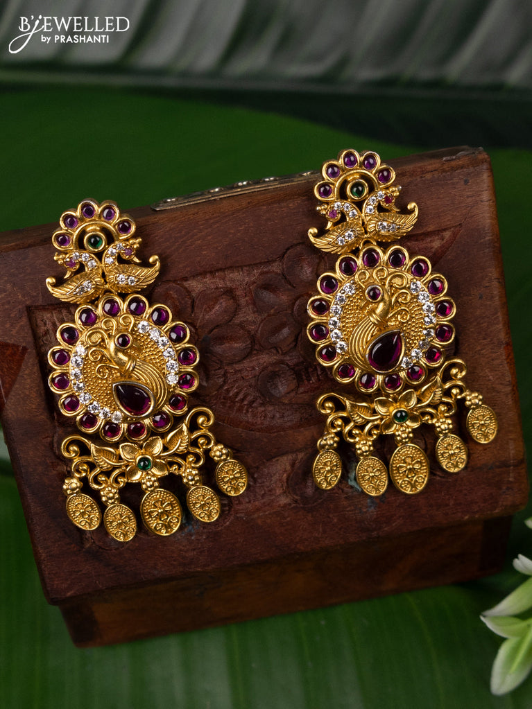 Antique earring peacock design with kemp & cz stones and pearl hangings