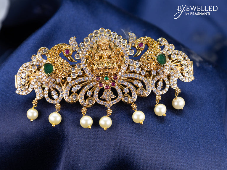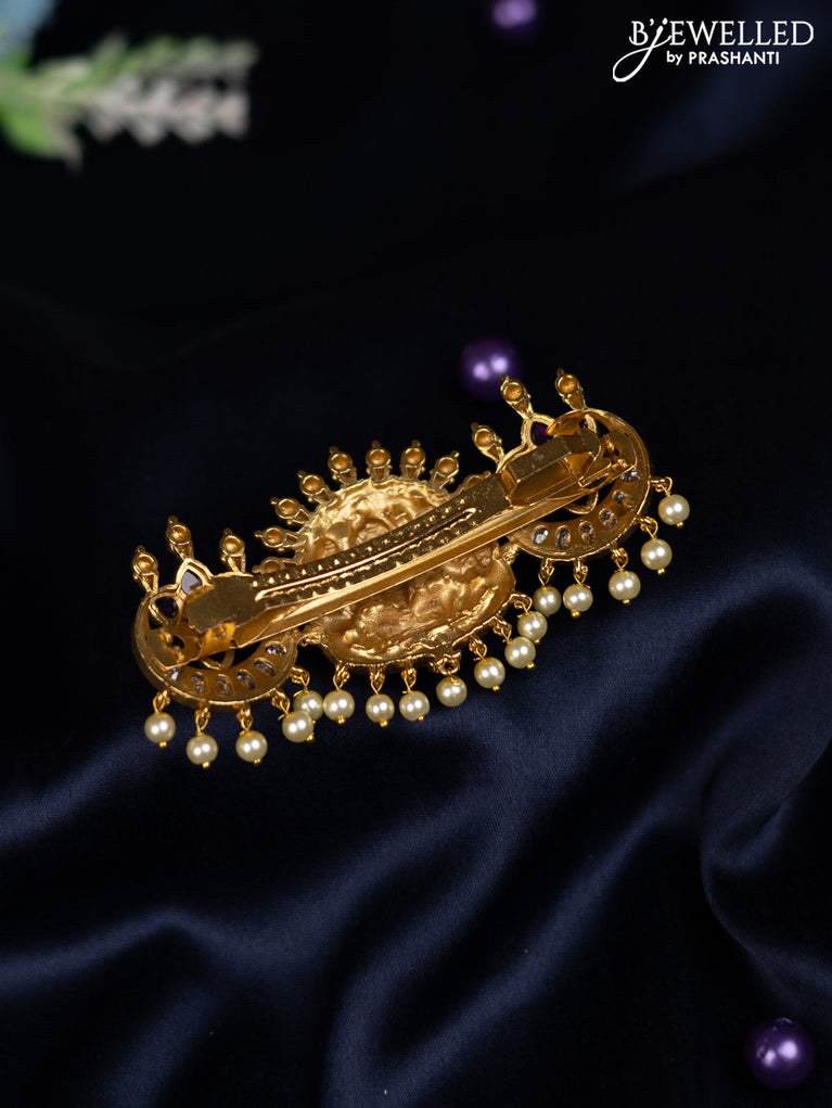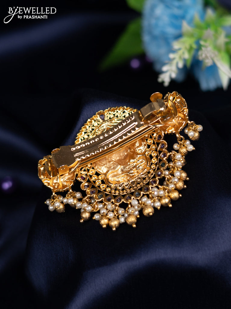 Antique hair clip medium size lakshmi design with kemp & cz stones and pearl hangings