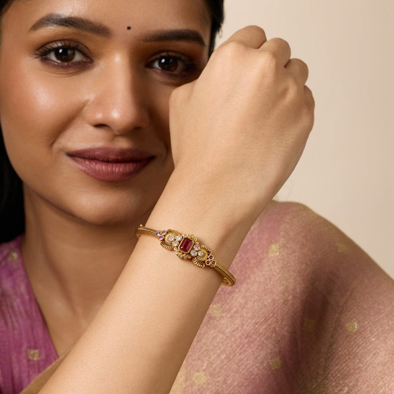 This beautiful Antique-plated Kempu Necklace Set is made of the highest quality metalwork and embroidered with dazzling Ruby & Emerald kemp stones It's perfect for any traditional occasion and makes a bold style statement with its eye-catching desi looks.Go for more options rather going for single design.