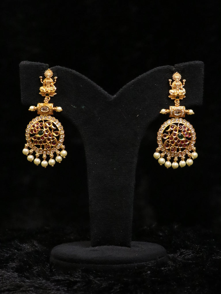 Antique maang tikka lakshmi deign with cz stones and pearl hangings