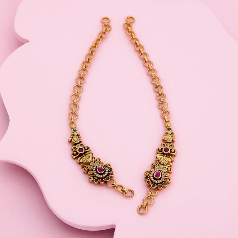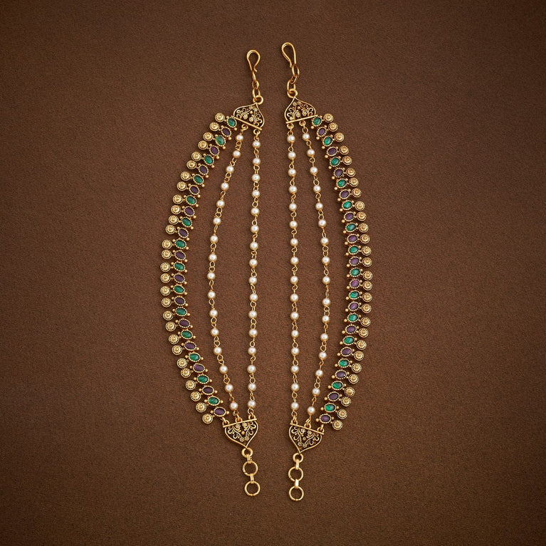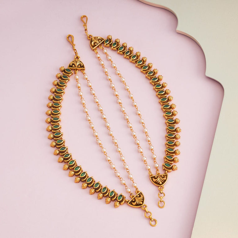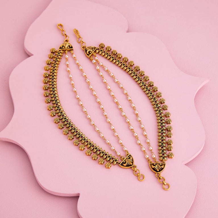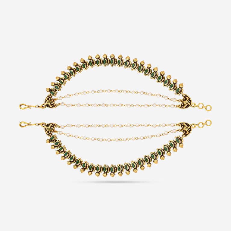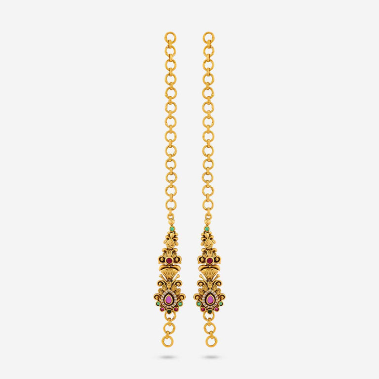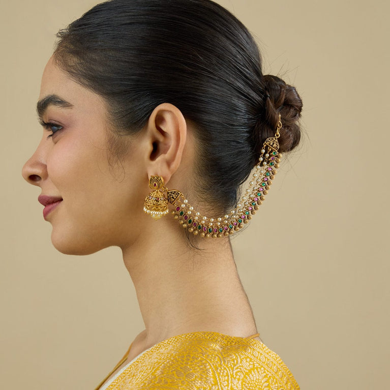 Antique medium size jhumka peacock design with kemp & cz stones and pearl hangings
