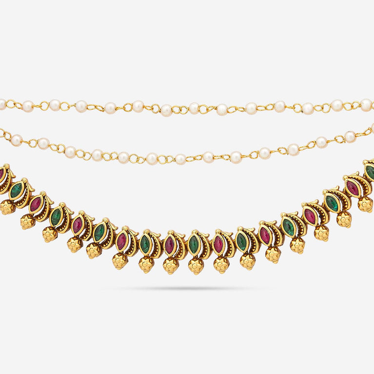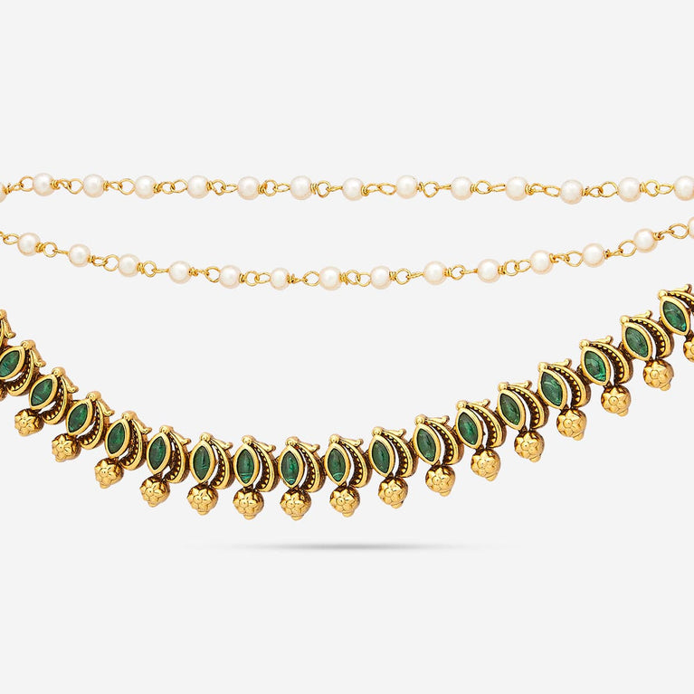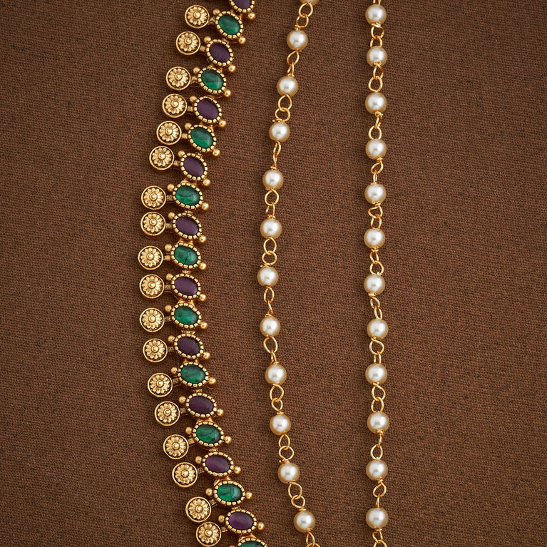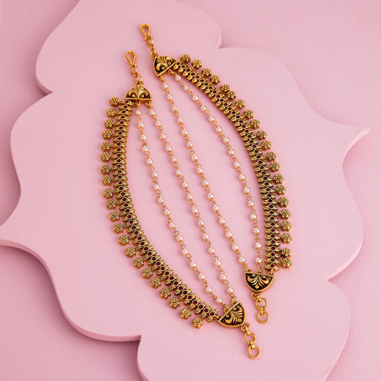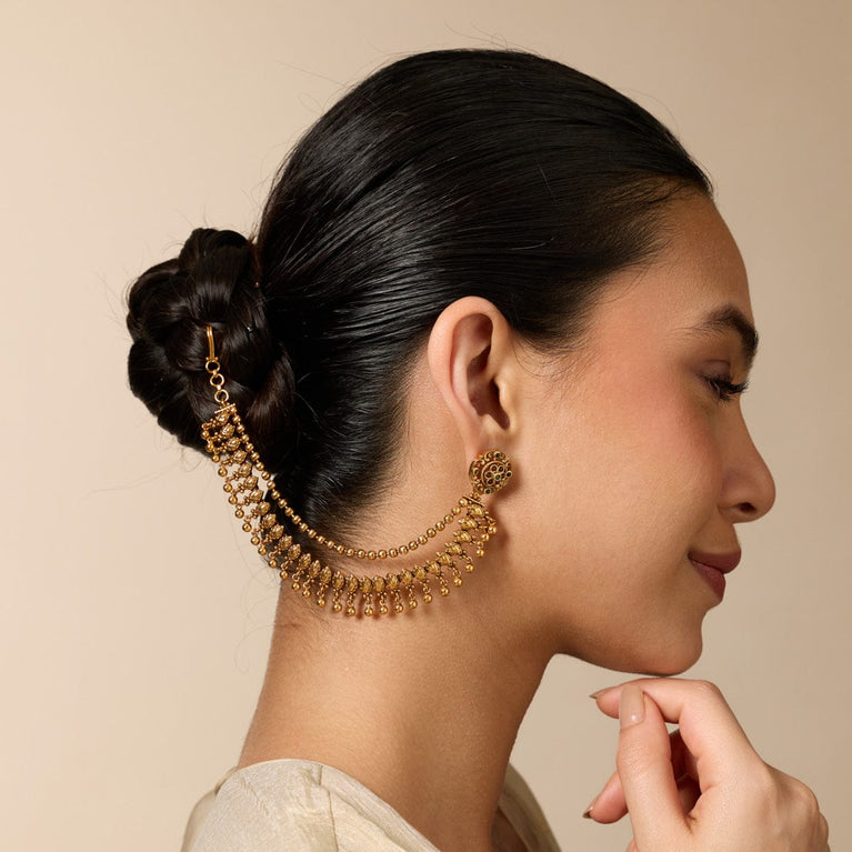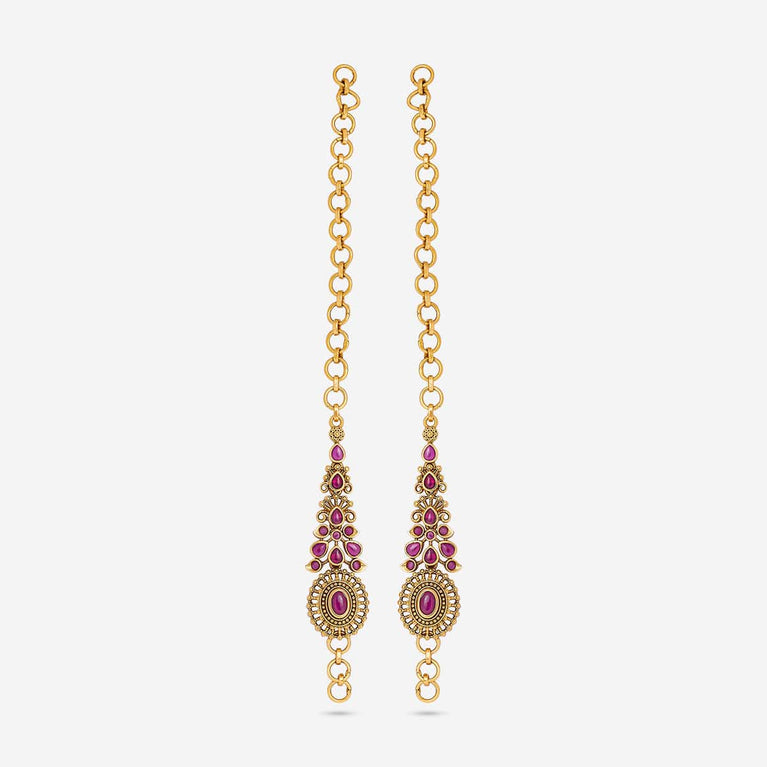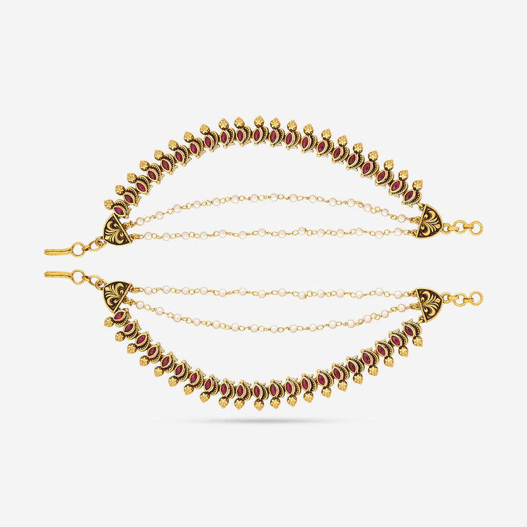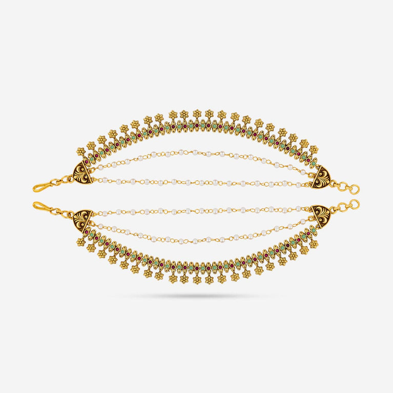 Antique medium size jhumka peacock design with kemp & cz stones and pearl hangings