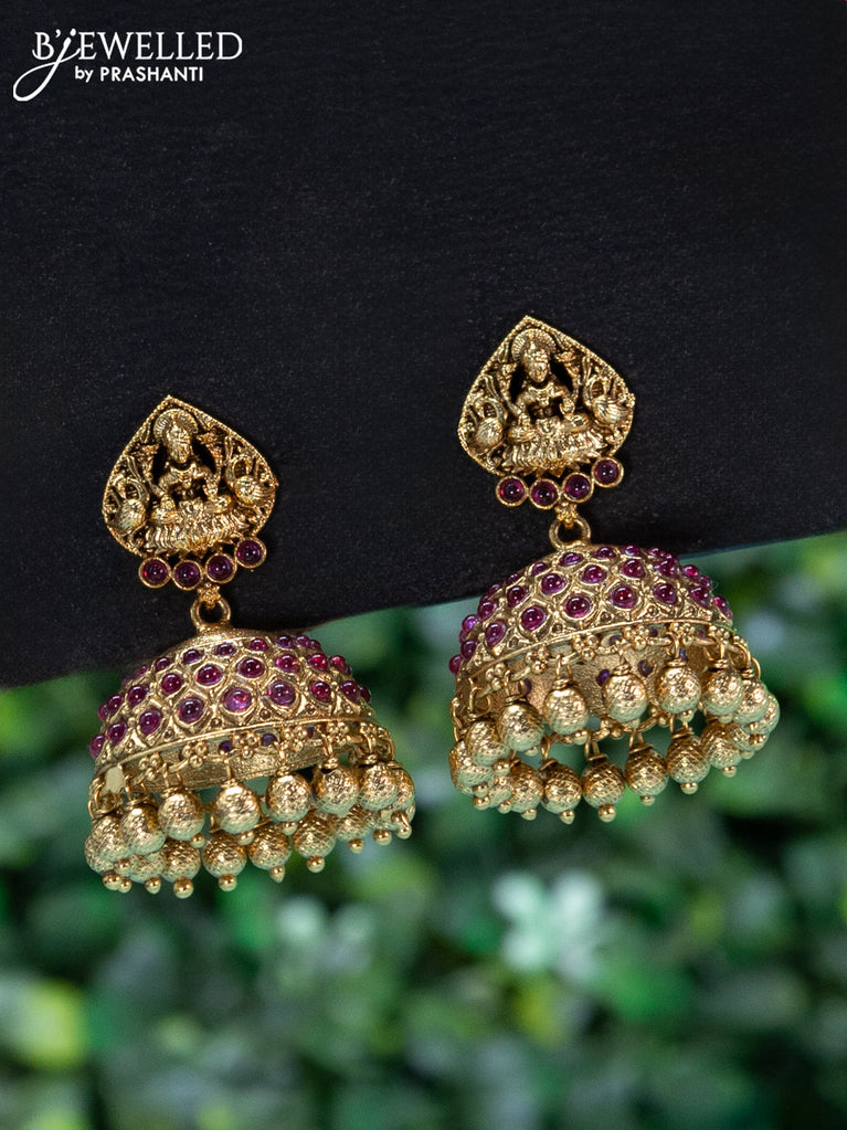 Antique necklace lakshmi design with pink kemp stones and green beads hanging