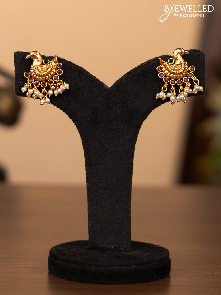 Antique necklace peacock design with kemp stones and pearl hangings without earrings