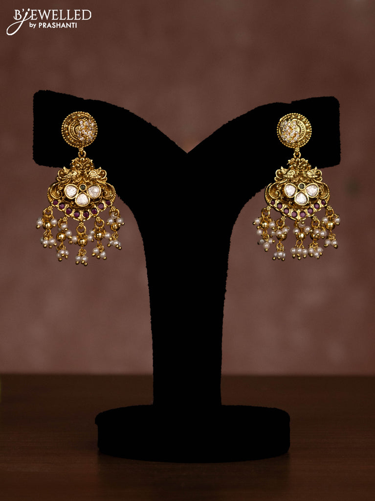 Antique necklace lakshmi pendant with kemp & cz stones and pearl hangings