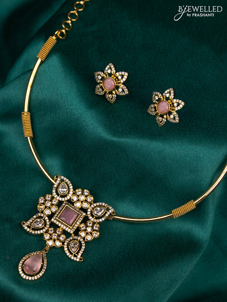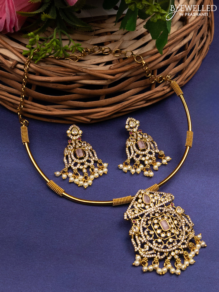 Antique ring type choker with baby pink & cz stones and pearl hangings