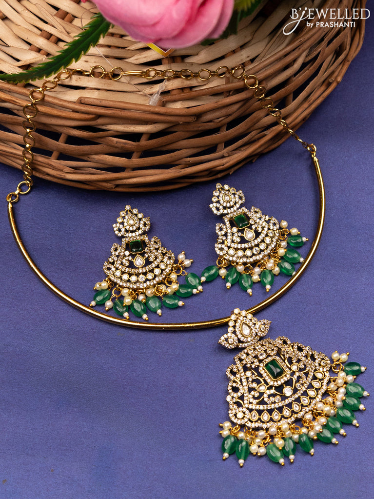 Antique ring type choker with emerald & cz stones and pearl hangings