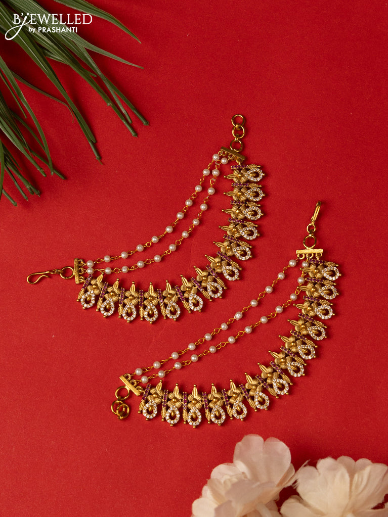Antique triple layer mattal with sangu design kemp ,cz stones and pearls