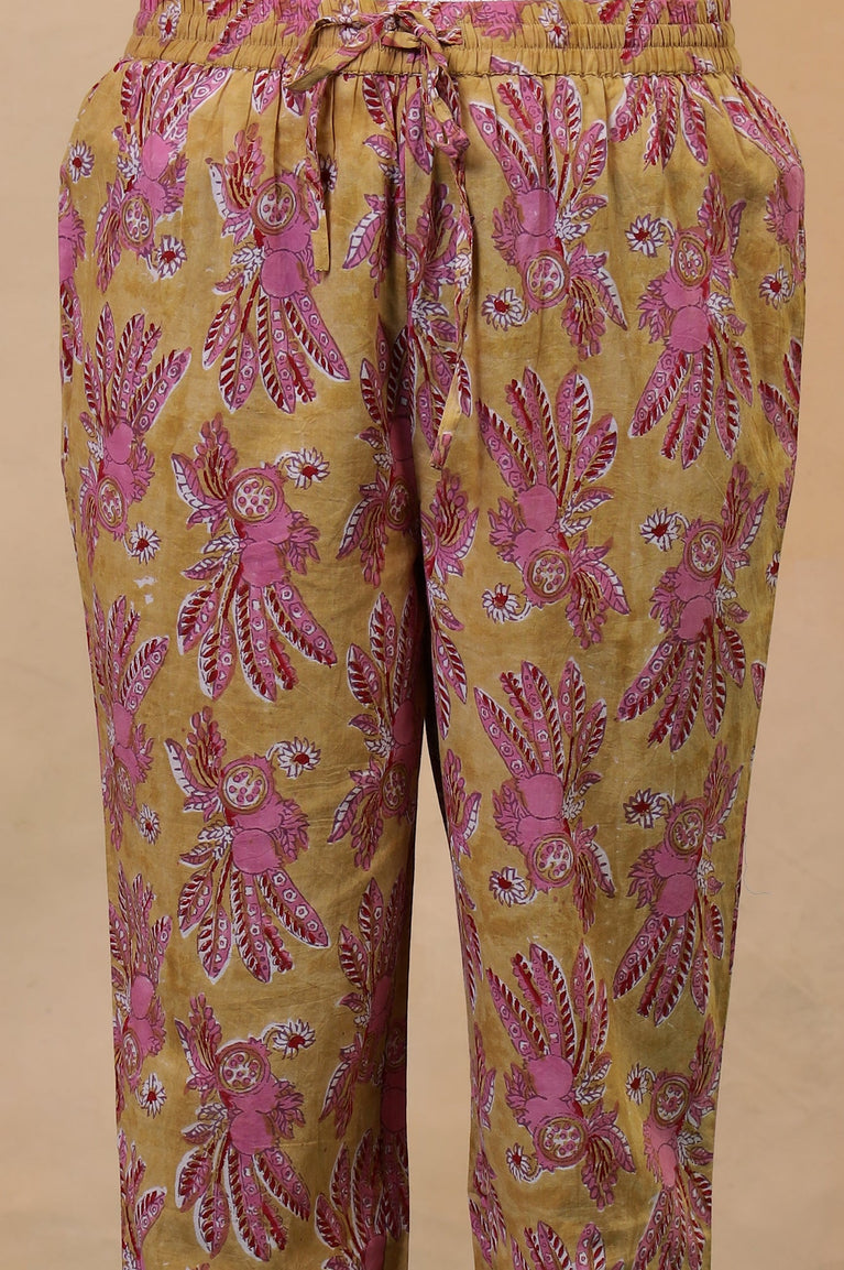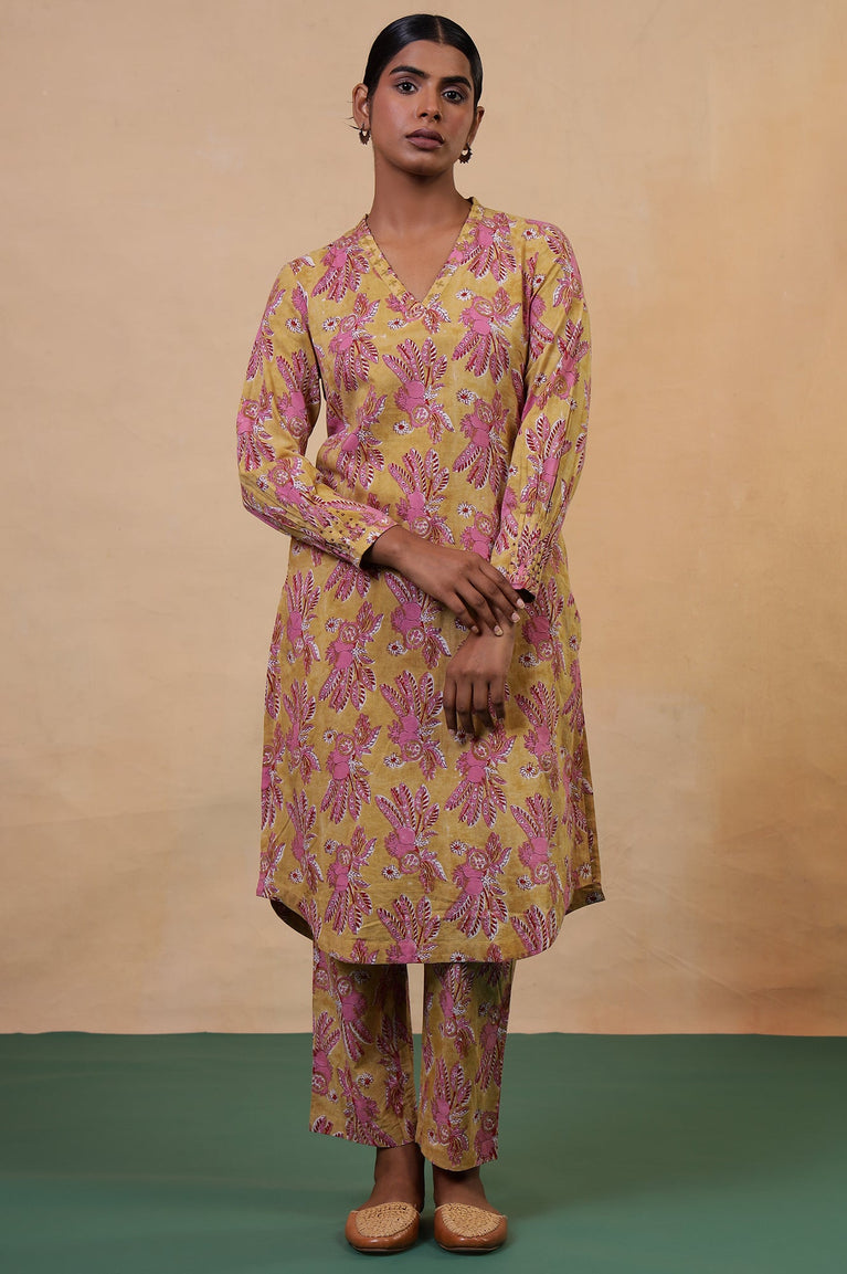 Apple Yellow Hand Block Printed Cotton Kurta and Pants Co-ord Set