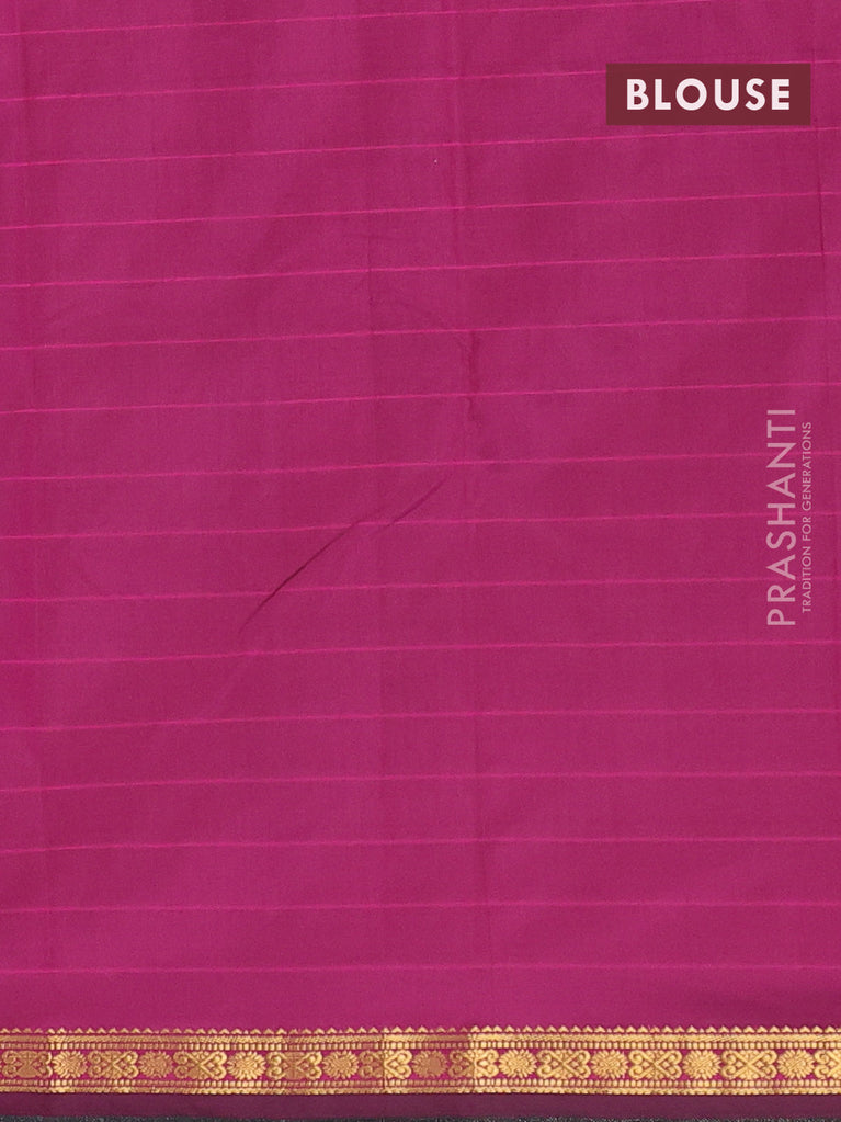 Arani semi silk saree dark grey and dark maagenta pink with allover copper zari weaves and zari checked border