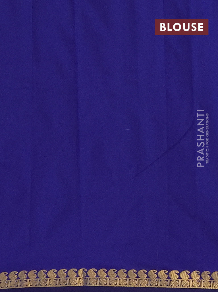 Arani semi silk saree dark blue with allover silver zari weaves in borderless style