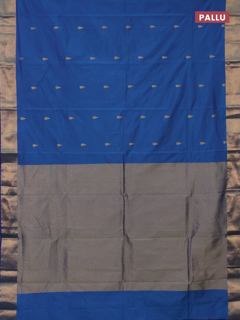 Arani semi silk saree dark blue with rudhraksha & paisley zari woven buttas and zari woven border