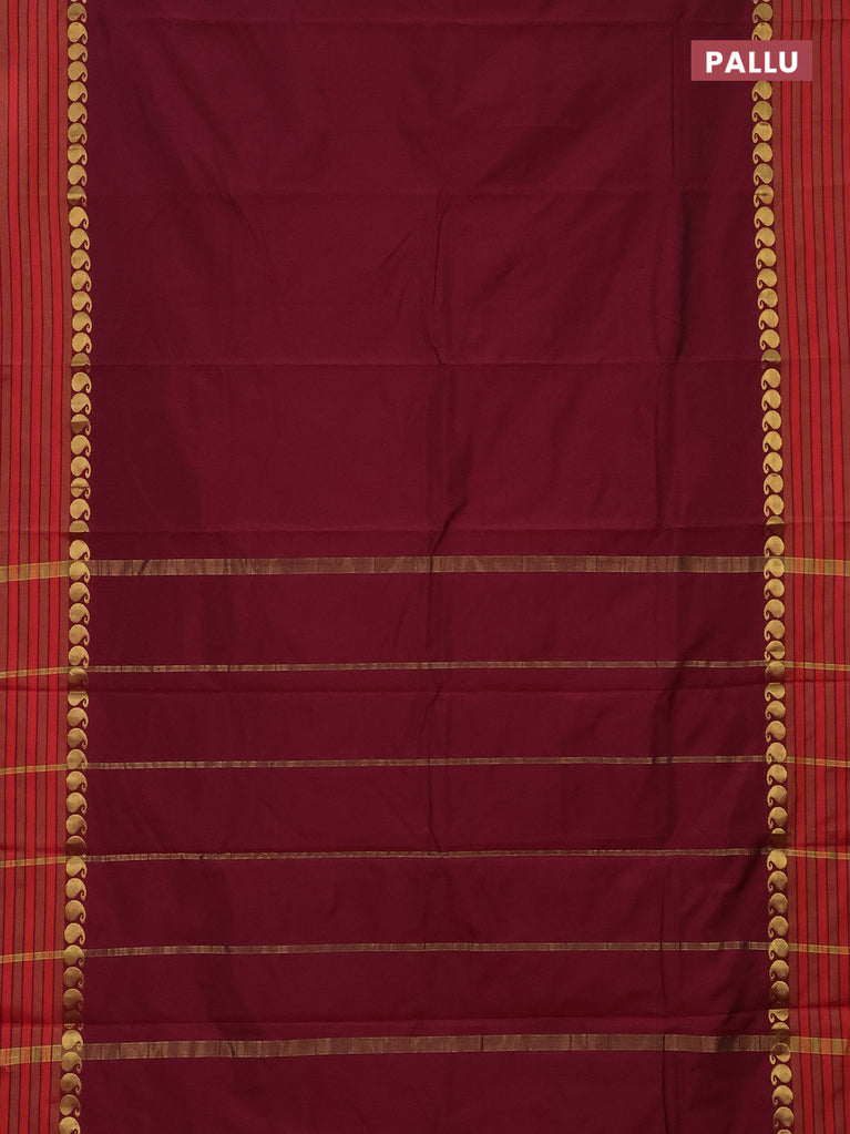 Arani semi silk saree dark magenta pink with plain body and zari woven border