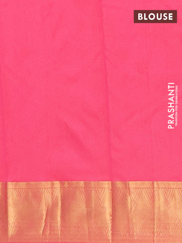 Arani semi silk saree peach pink with zari woven thilak buttas and zari woven border