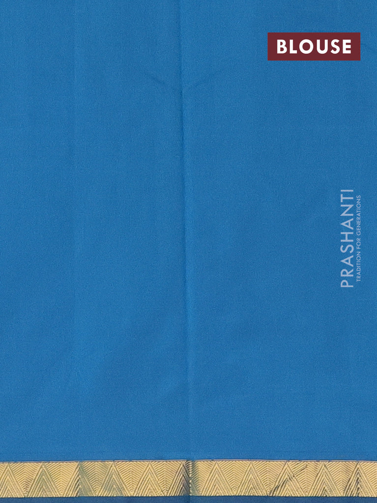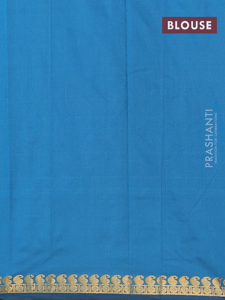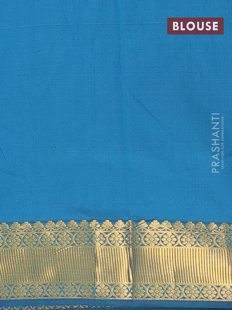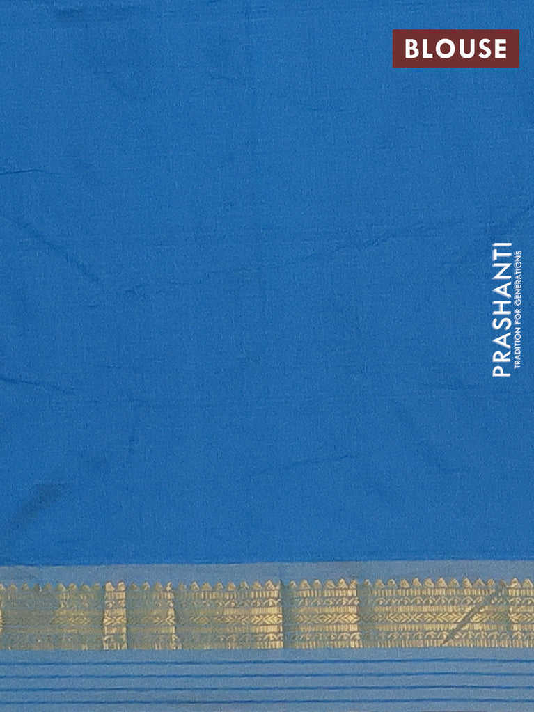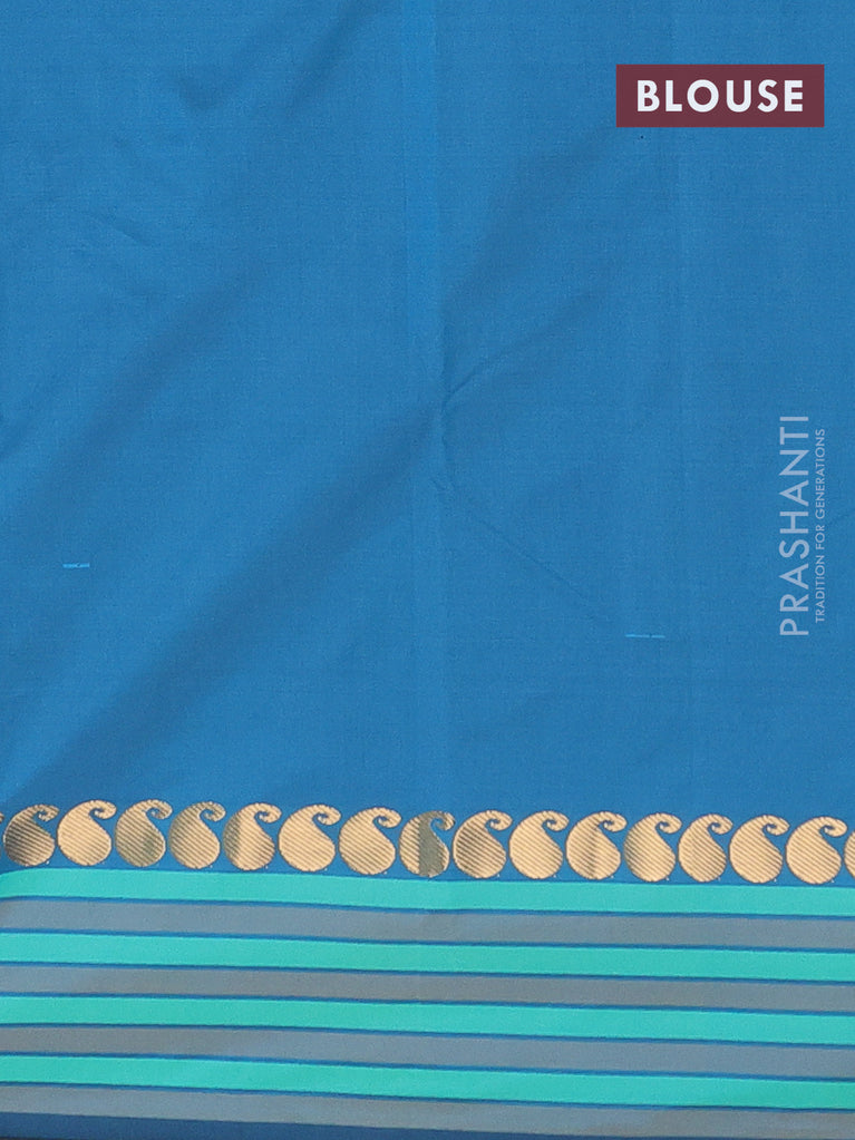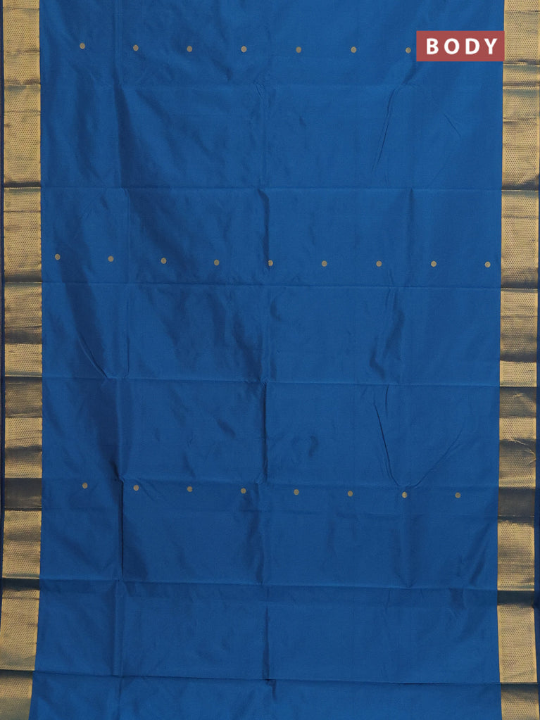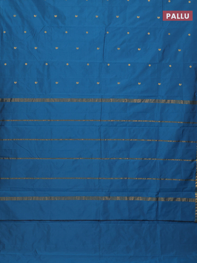 Arani semi silk saree peacock blue with zari woven thilak buttas and zari woven border