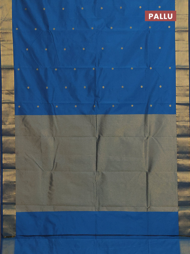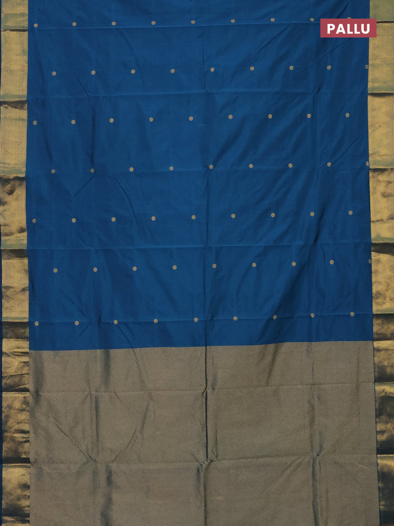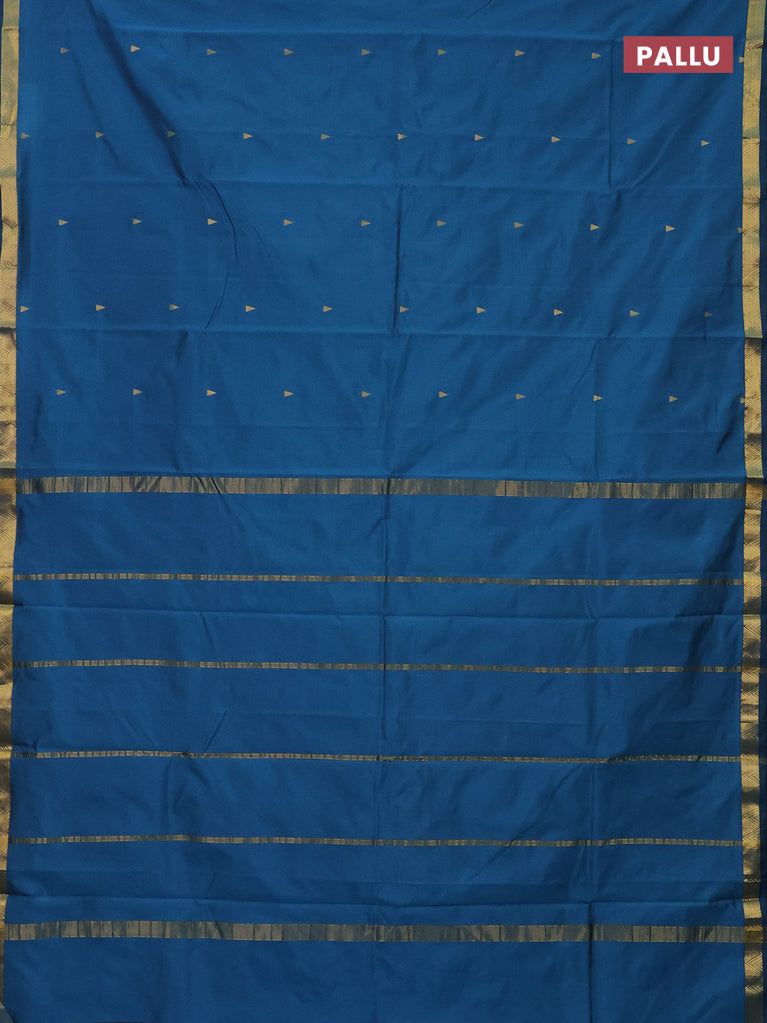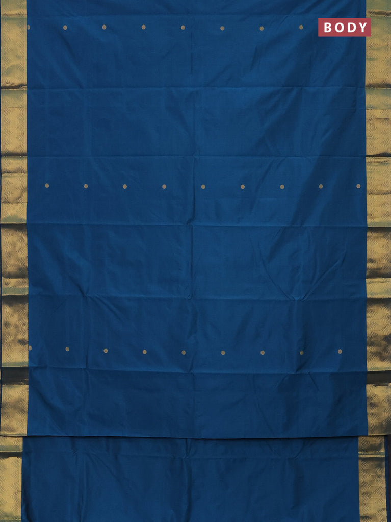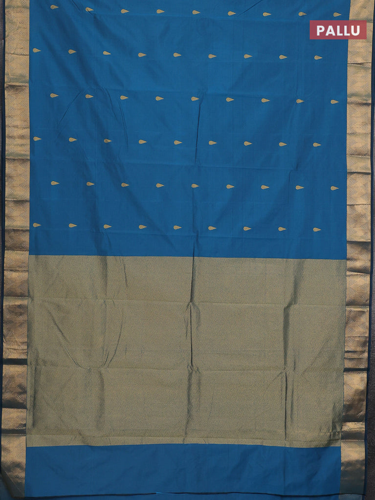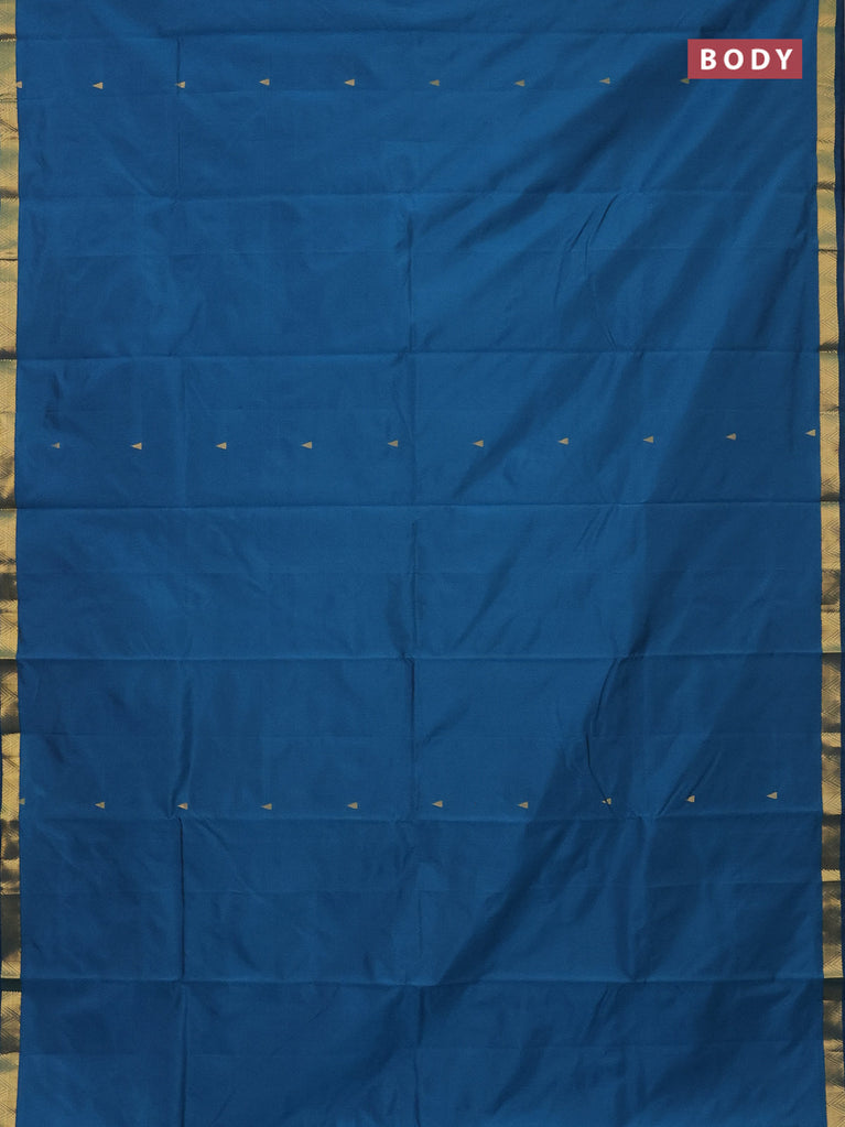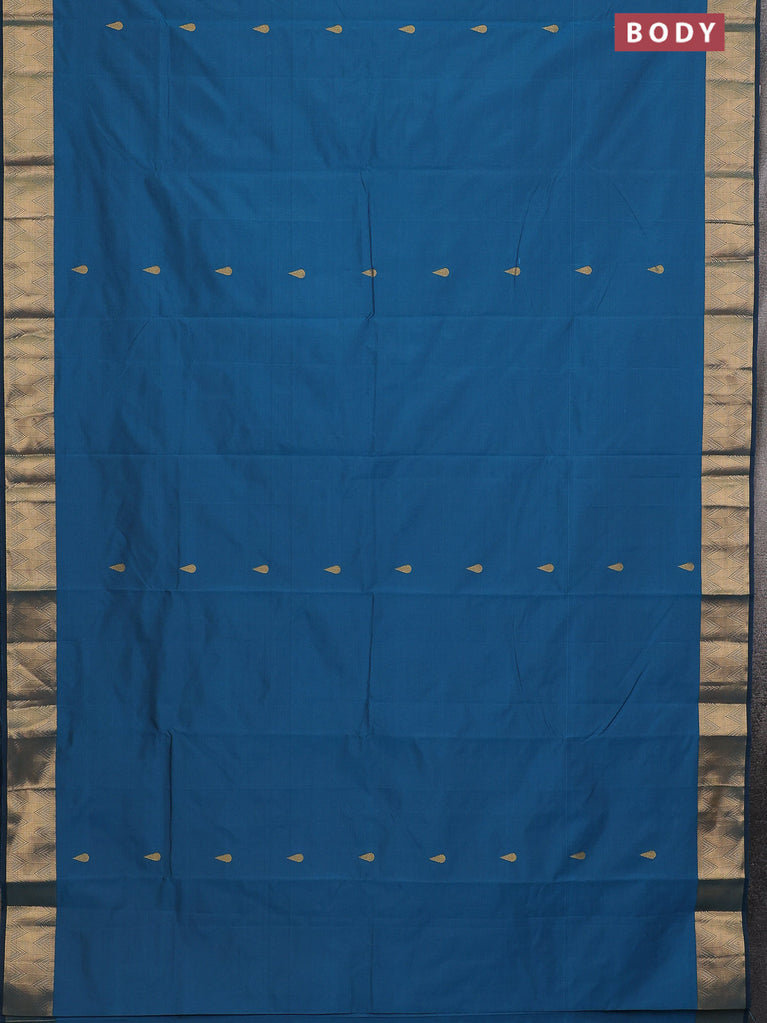 Arani semi silk saree peacock blue with rudhraksha & paisley zari woven buttas and zari woven border