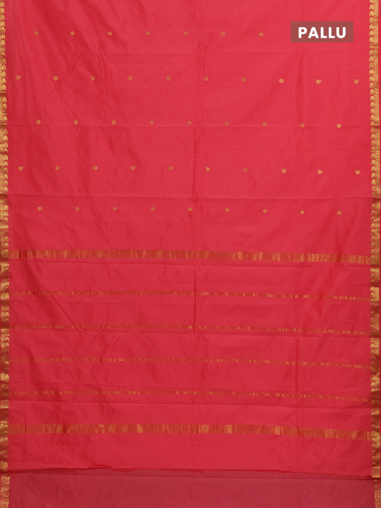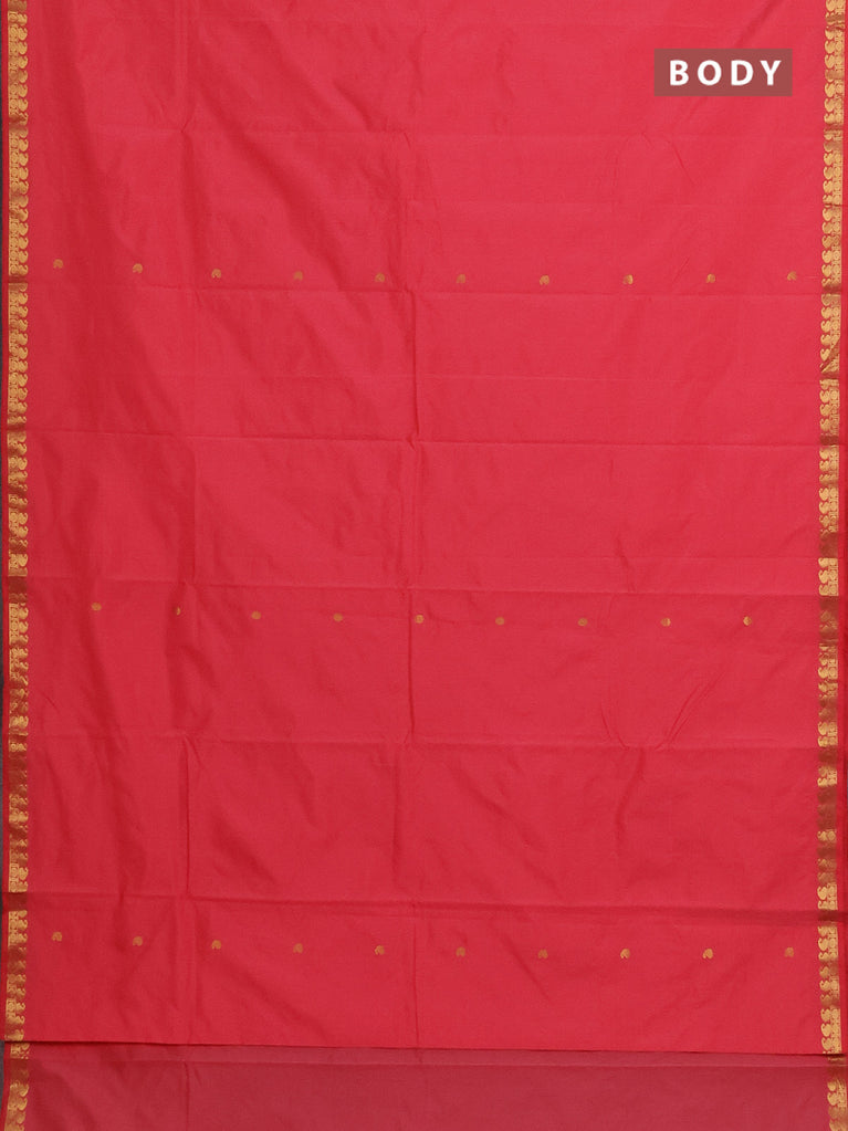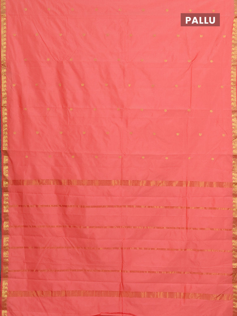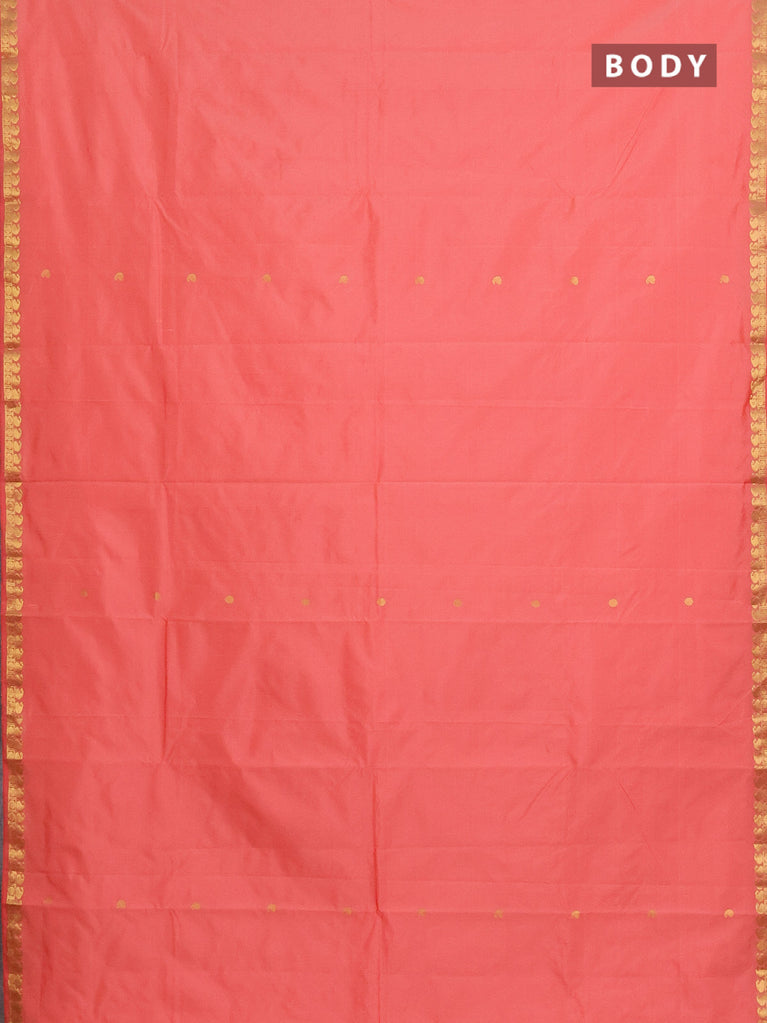 Arani semi silk saree peach shade with rudhraksha & paisley zari woven buttas and zari woven border