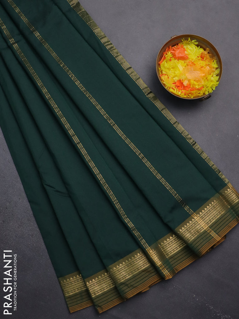 Arani semi silk saree peacock blue and teal green with plain body and paisley zari woven simple border