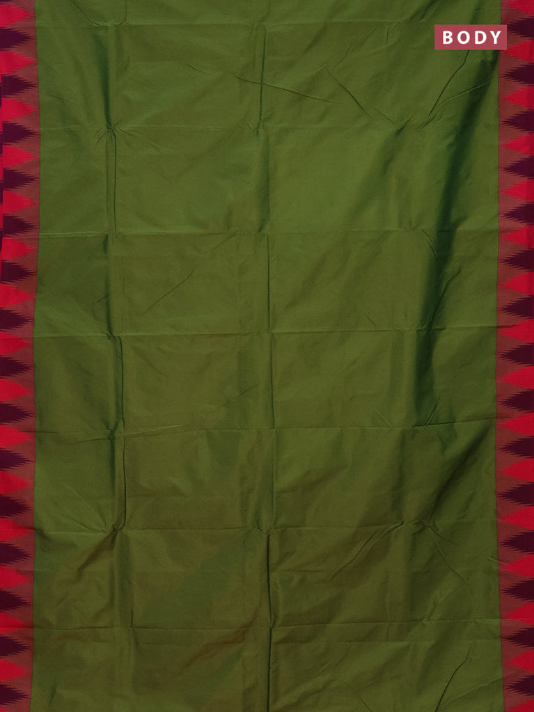 Arani semi silk saree rust shade and green with plain body and temple design border